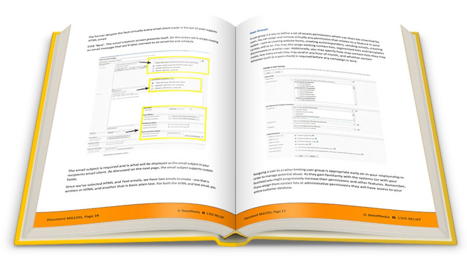 Pictured: We provide our clients with a 120-page book on taking advantage of the full suite of advanced features made available via the self-hosted email platform (are your emails still carrying MailChimp branding? - this is a big no-no in the finance space). A short 2-page 'quick start' section is provided in order to send your first basic email. Ongoing education and resource material is provided in order to ensure you continue to build compelling email campaigns that provide the education your leads email subscribers are looking for.
