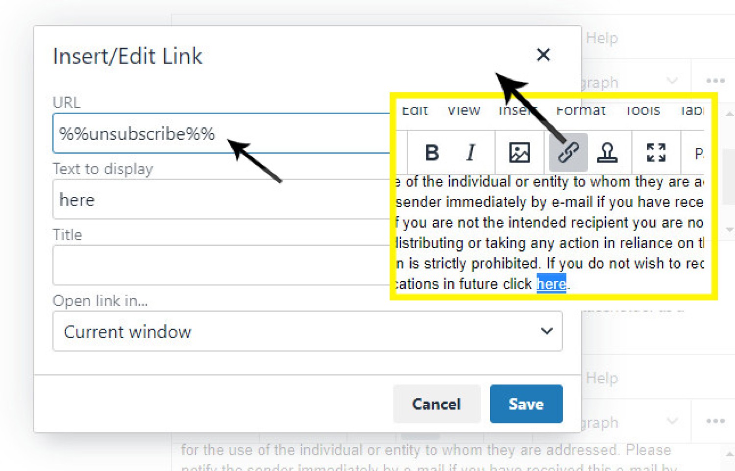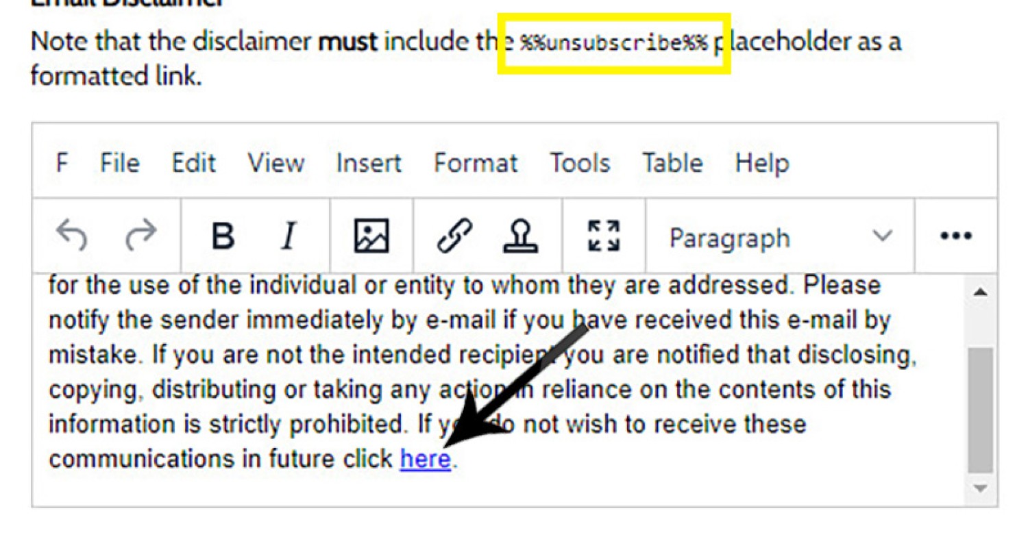 Adding an Unsubscribe Link into the Disclaimer