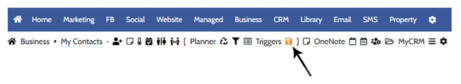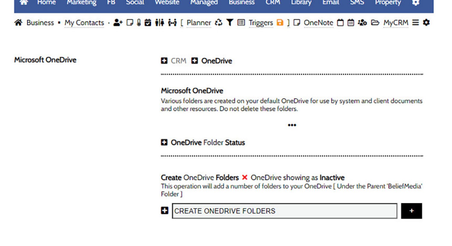 Pictured: You will find the Microsoft Drive panel by first navigating to the CRM module, then selecting the small 'Disk' icon in the primary submenu.