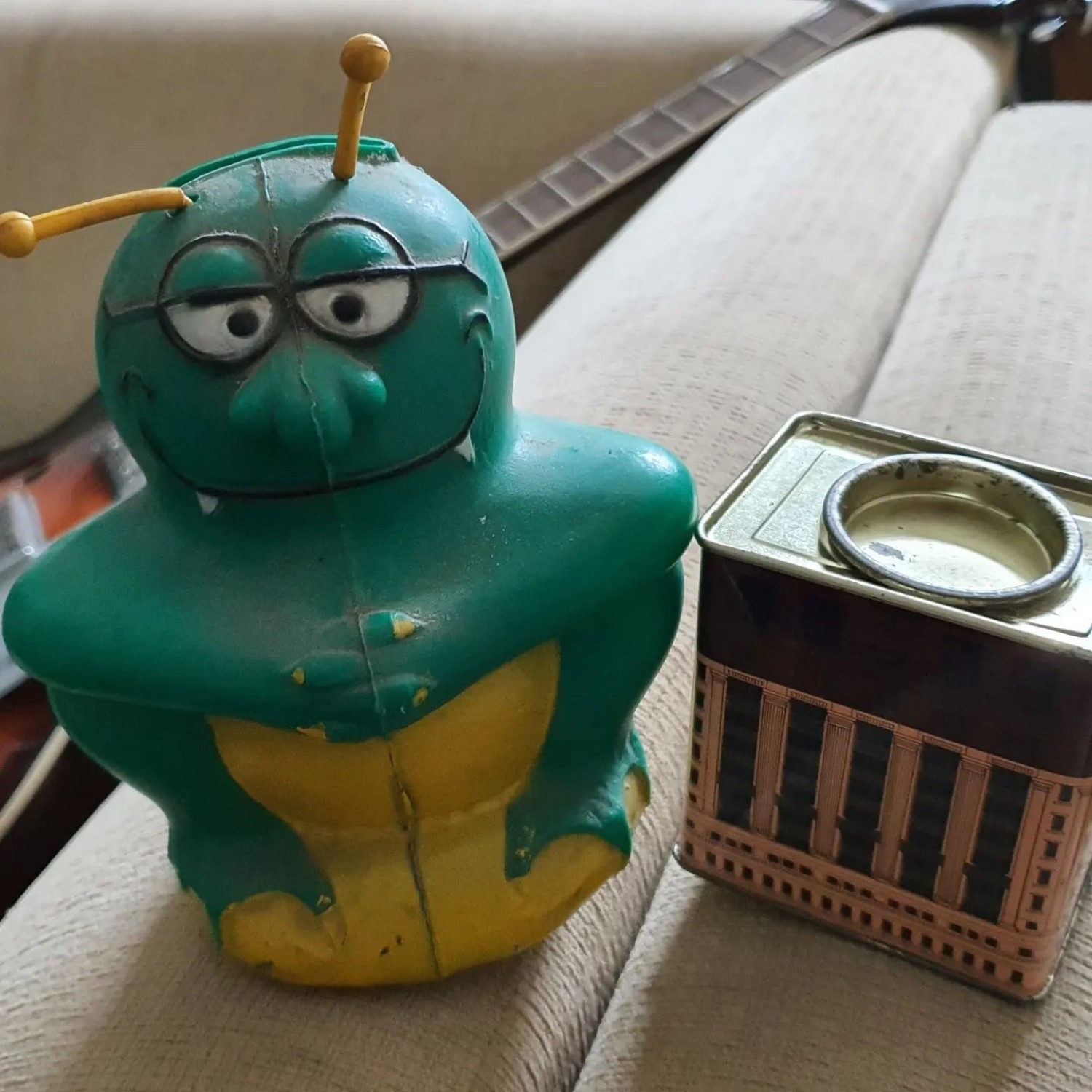 The Commbank money box was normally a two-tone green (we have a few hundred of them in our office), so it's nice to find another one in brown.