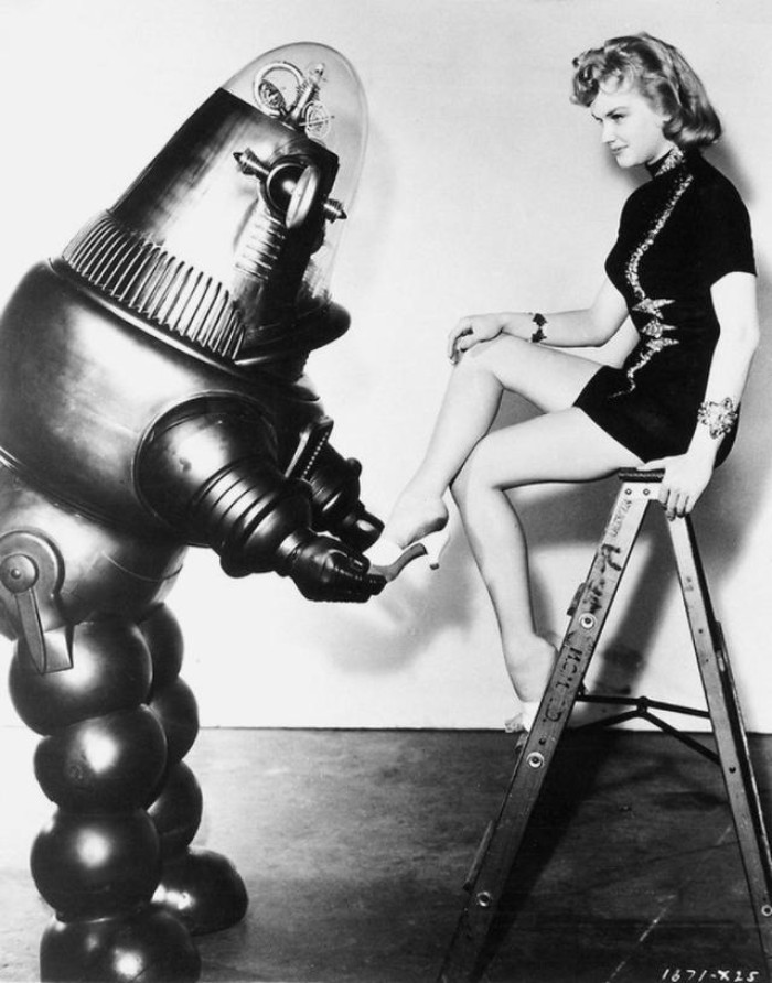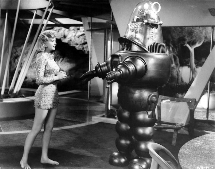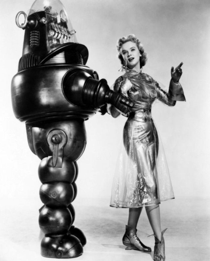 Forbidden Planet pioneered several aspects of science fiction cinema. It was the first science fiction film to depict humans traveling in a faster-than-light starship of their own creation. It was also the first to be set entirely on anotherplanet in interstellar space, far away from Earth. The Robby the Robot character is one of the first film robots that was more than just a mechanical "tin can" on legs; Robby displays a distinct personality and is an integral supporting character in the film.Outside science fiction, the film was groundbreaking as the first of any genre to use an entirely electronic musical score, courtesy ofBebe and Louis Barron.