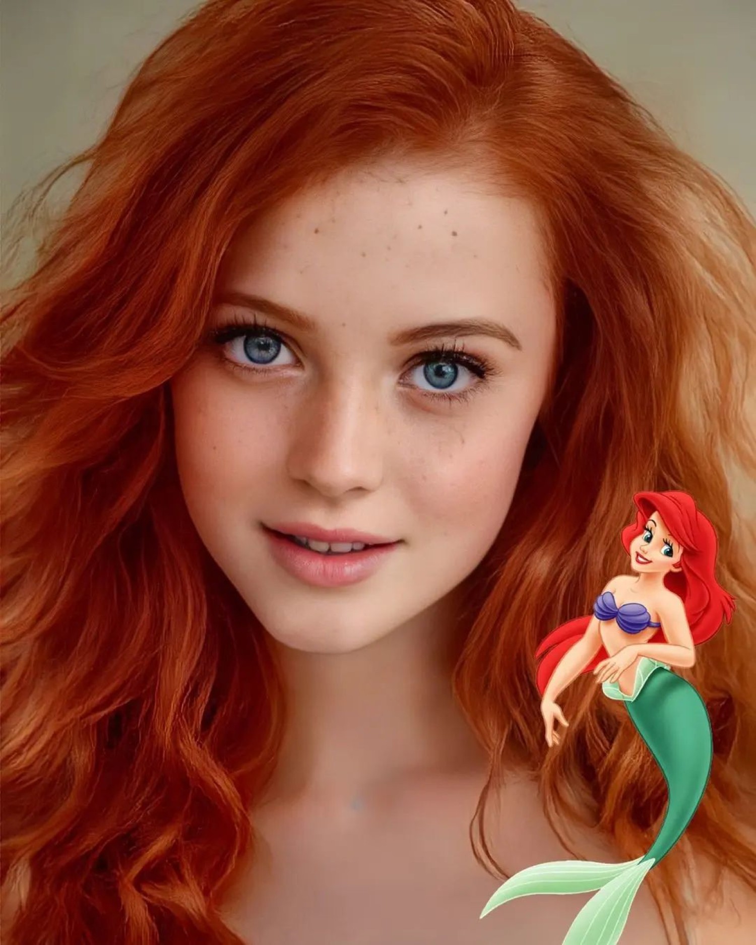 If Ariel (the Little Mermaid) were a real person. An AI-assisted rendering from Instagram's @hidreley.