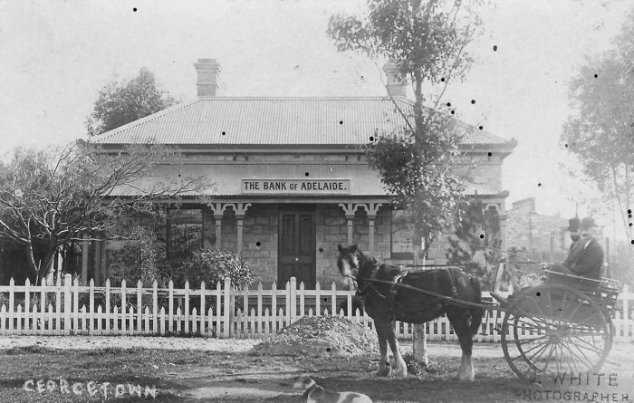 Bank of Adelaide, Georgetown, South Australia, c1900. The Bank of Adelaide was founded in 1865 in Adelaide, and had most of its branches within South Australia, including a head office at 81 King William Street, Adelaide. Interstate branches were located in most states of Australia, and one in central London at 11 Leadenhall Street.