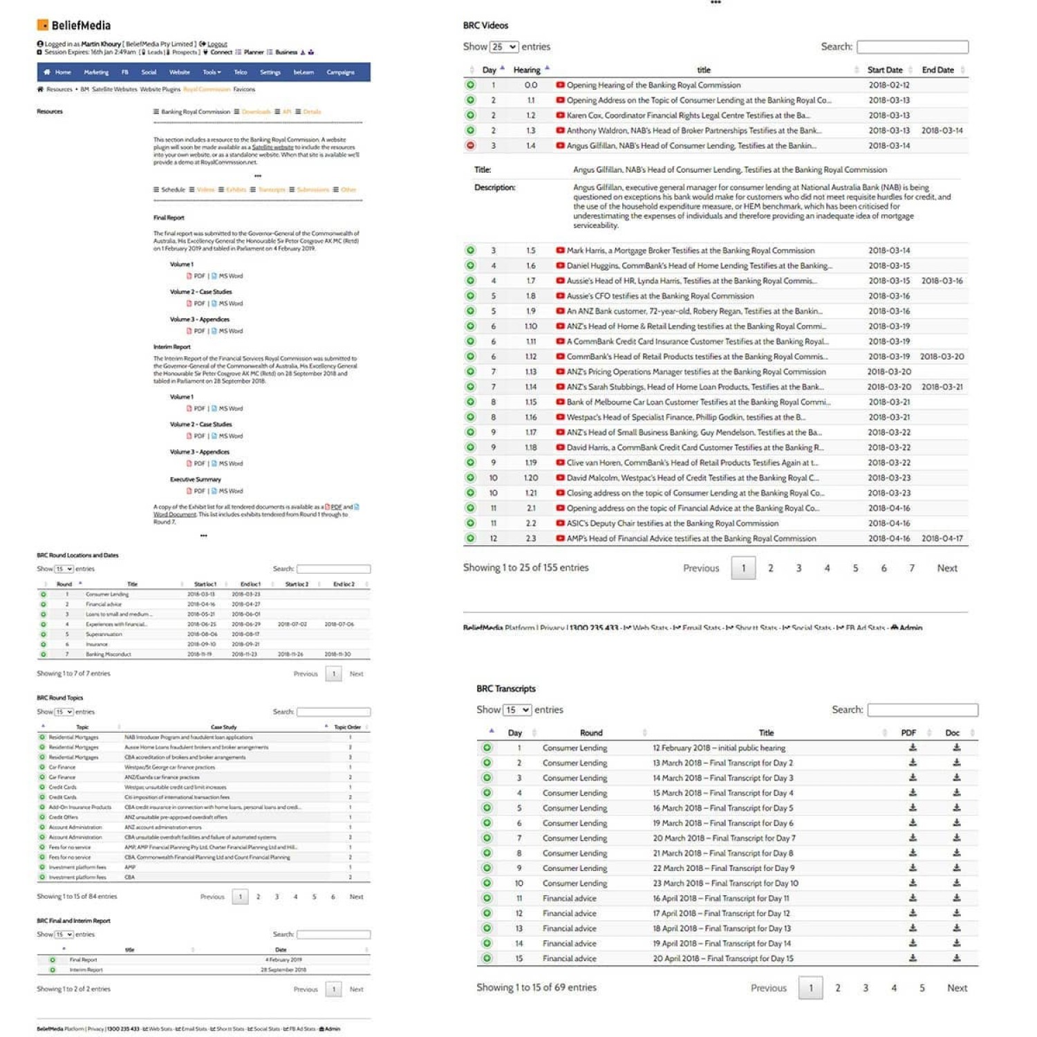 We created the archive to preserve the data in a manner that was easy to navigate and search. The module includes all BRC sections, videos, transcripts, and other documents.