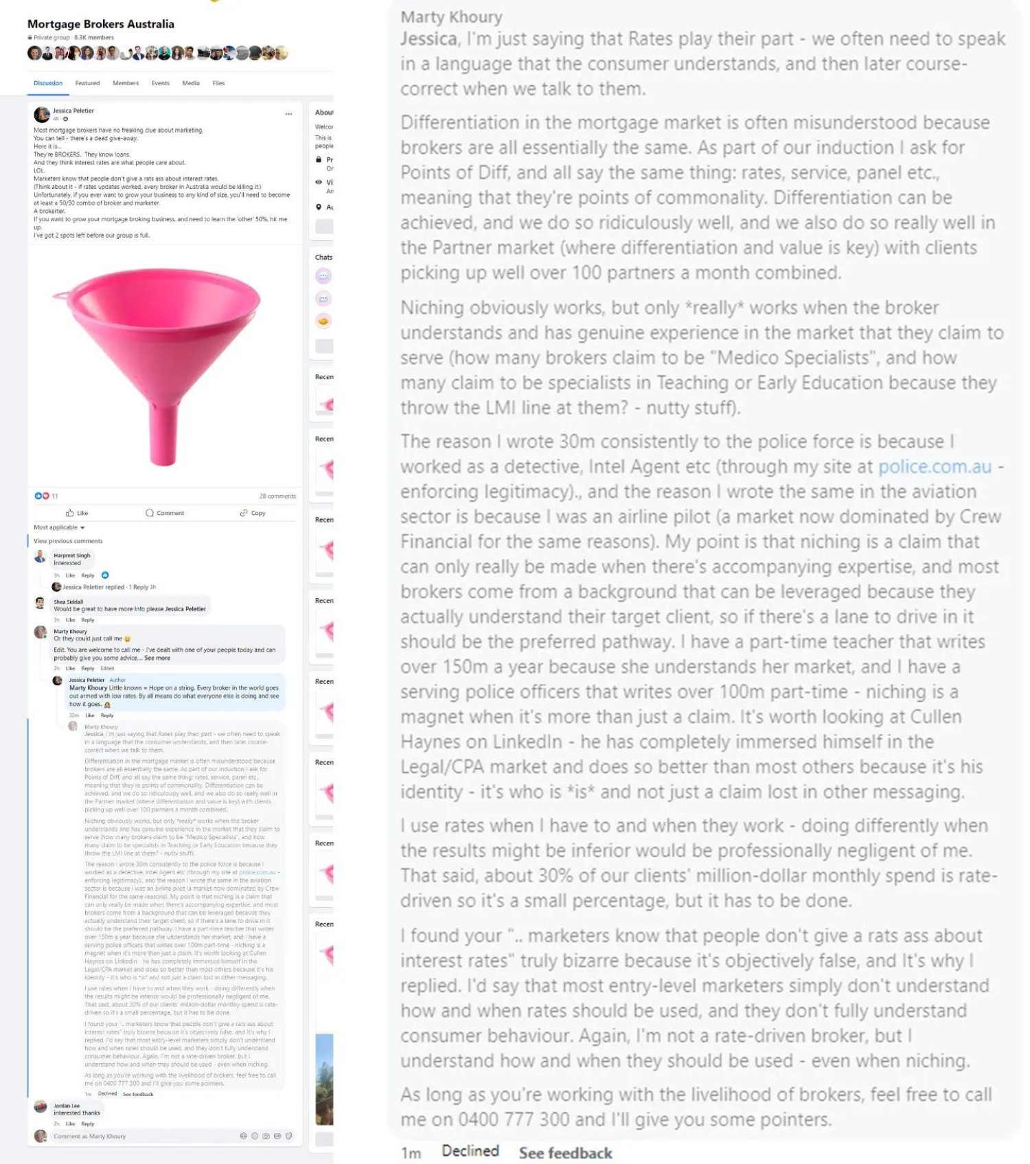 The conversation was innocent enough, but Jessica was wrong in *so many ways*. I would have though moderators would welcome and encourage competing arguments when replying to beginners, but they instead willingly allowed brokers to be led into the arms of absolute mediocrity in complete contrast to the overarching best-interest ethos that is meant to be the foundation upon which the industy operates.