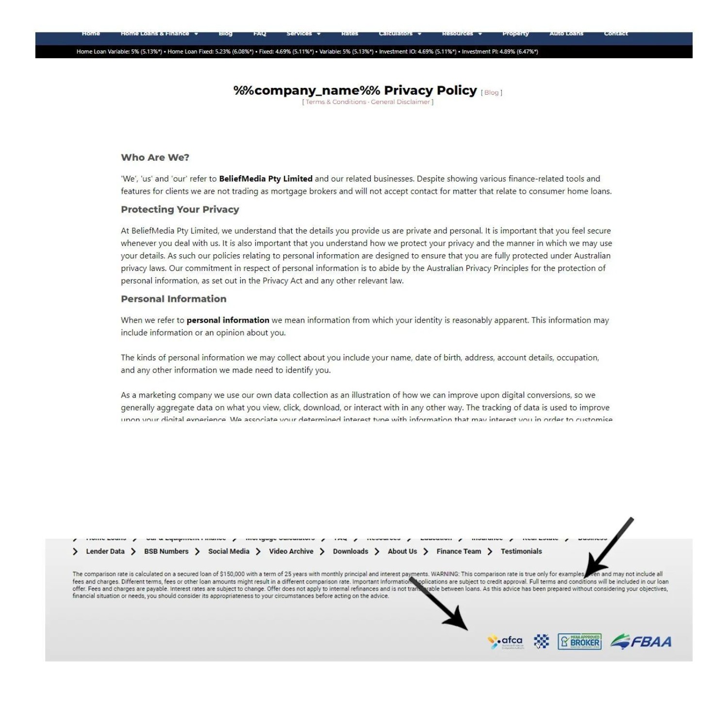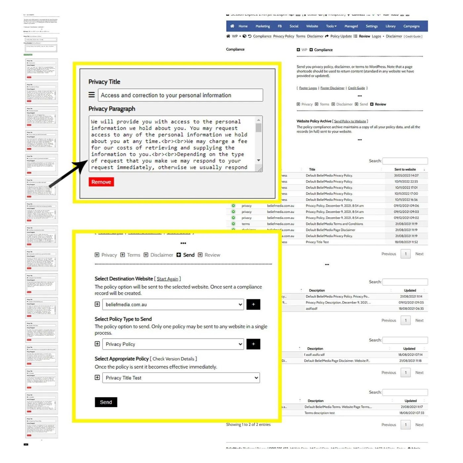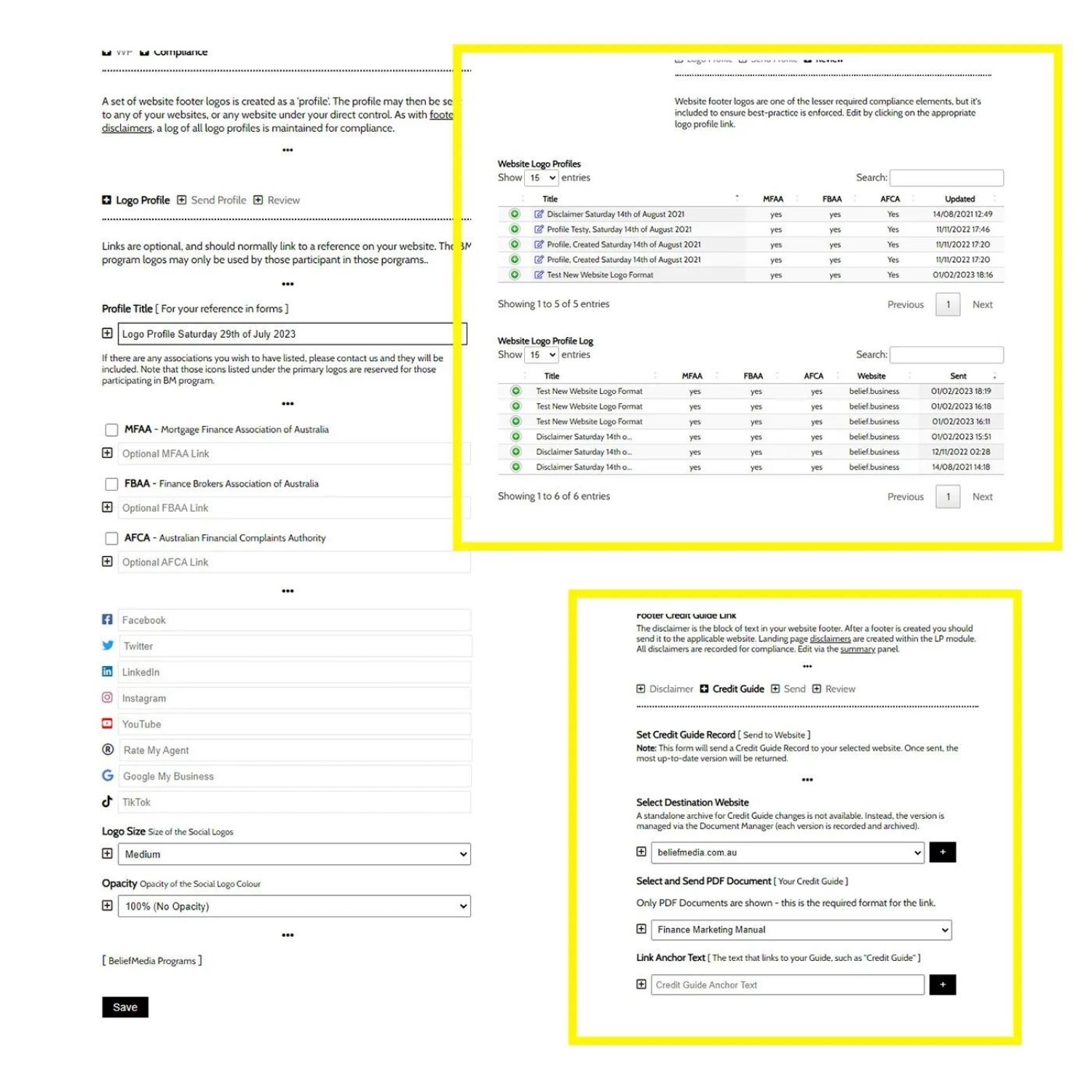 It doesn't matter what part of your basic compliance features requires an update: industry logos, licencing, privacy, terms, disclaimer, footer disclaimer etc. - its all a point-and-click process.