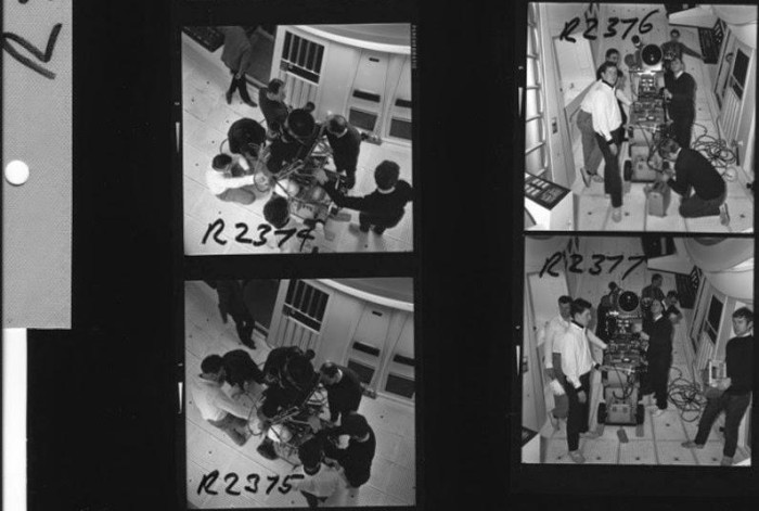 Principal photography began on 29 December 1965, in Stage H at Shepperton Studios, Shepperton, England. The studio was chosen because it could house the 60-by-120-by-60-foot (18 m × 37 m × 18 m) pit for the Tycho crater excavation scene, the first to be shot. In January 1966, the production moved to the smallerMGM-British Studios in Borehamwood, where the live-action and special-effects filming was done, starting with the scenes involving Floyd on the Orion spaceplane; it was described as a "huge throbbing nerve center ... with much thesame frenetic atmosphere as a Cape Kennedy blockhouse during the final stages of Countdown."