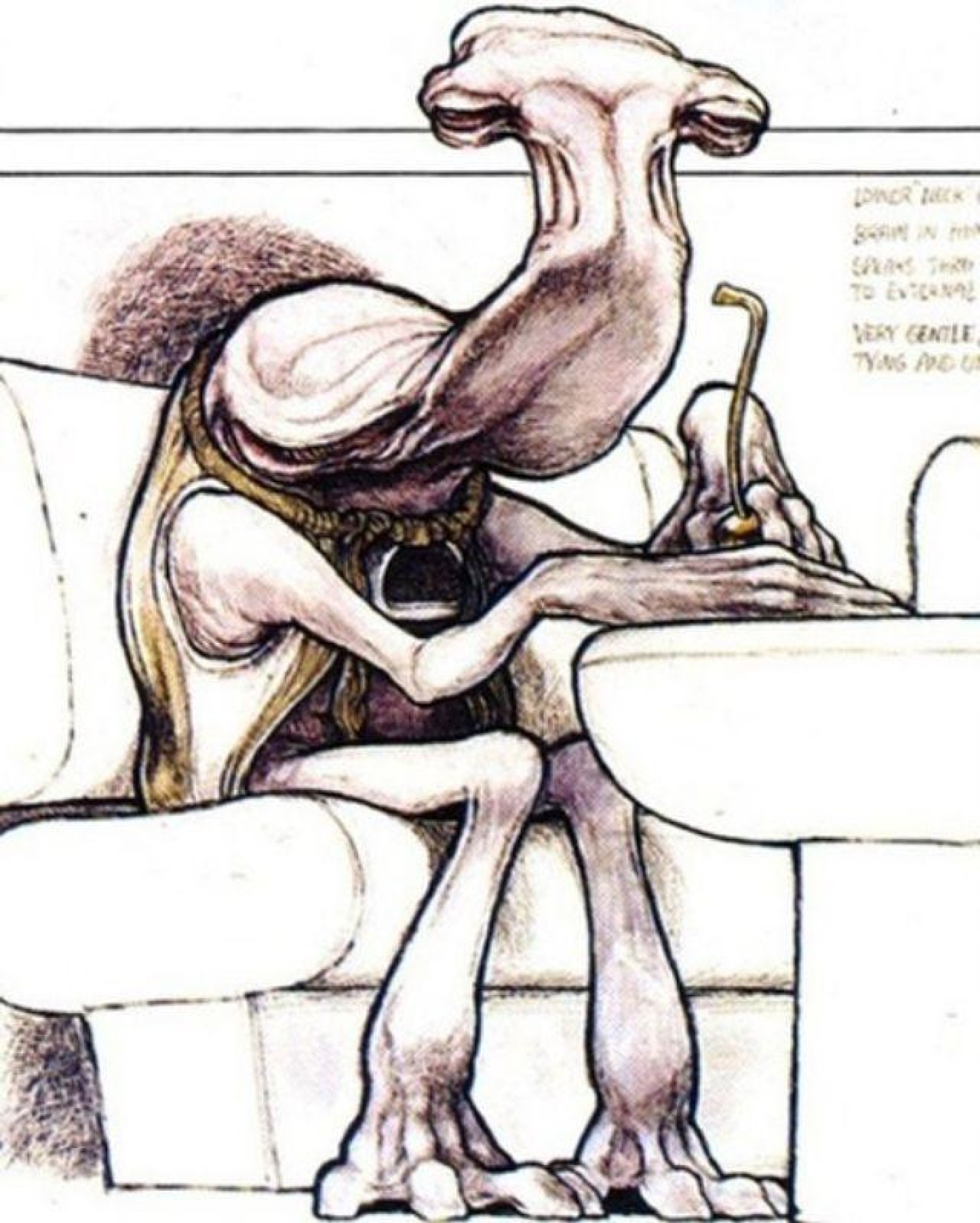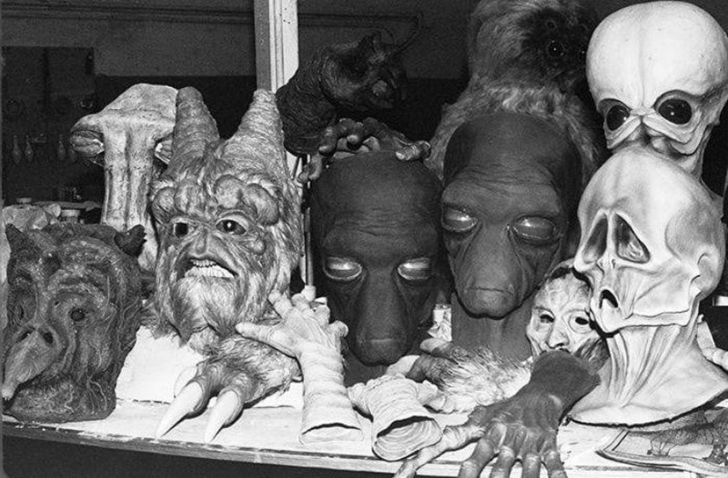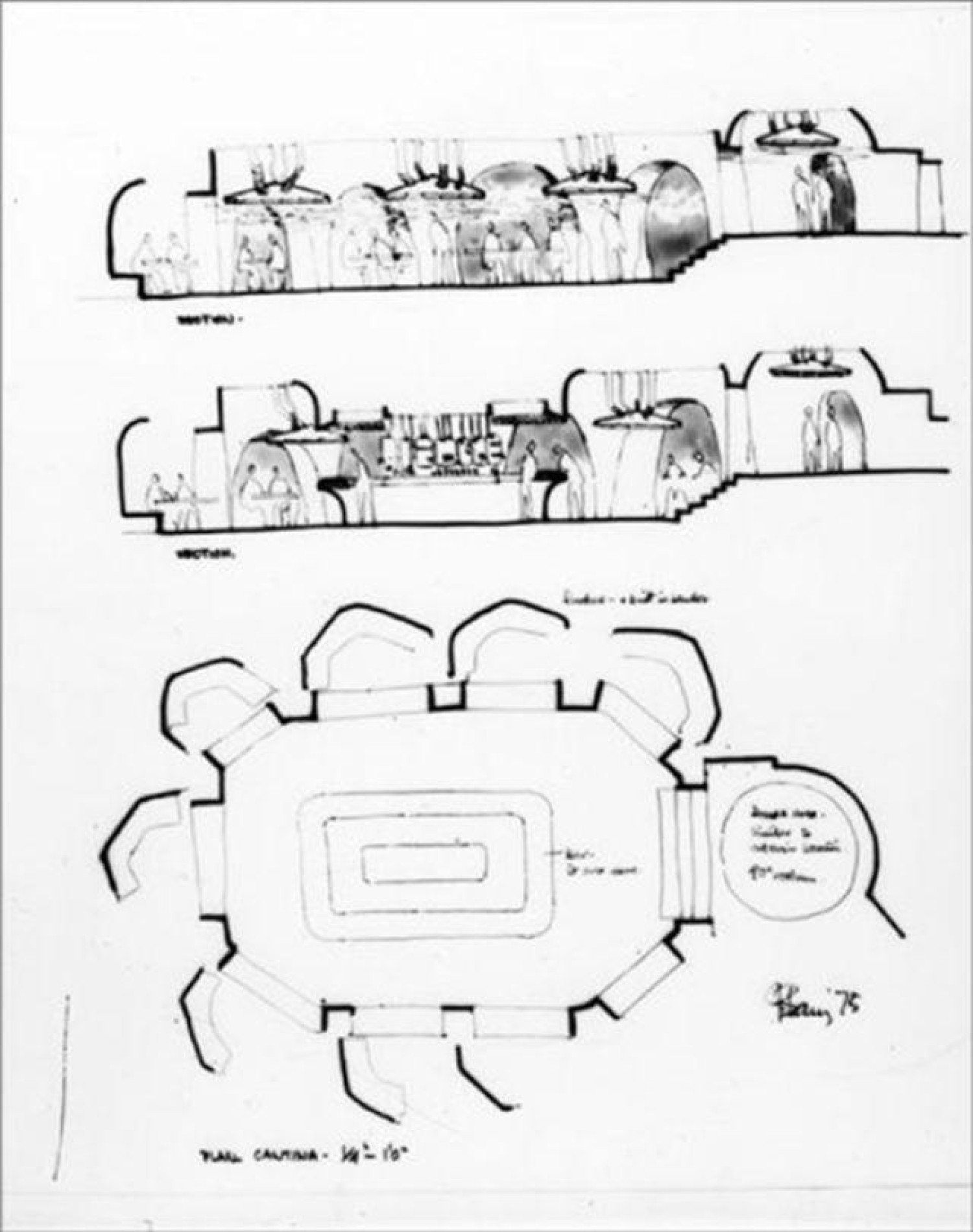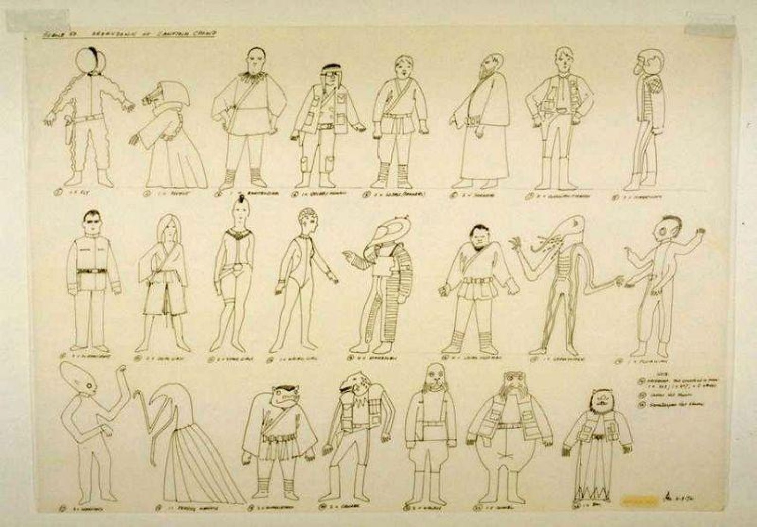 Following is a collection of models, set and character drawings, and production stills from the Mos Eisley cantina scene in Star Wars: Episode IV.