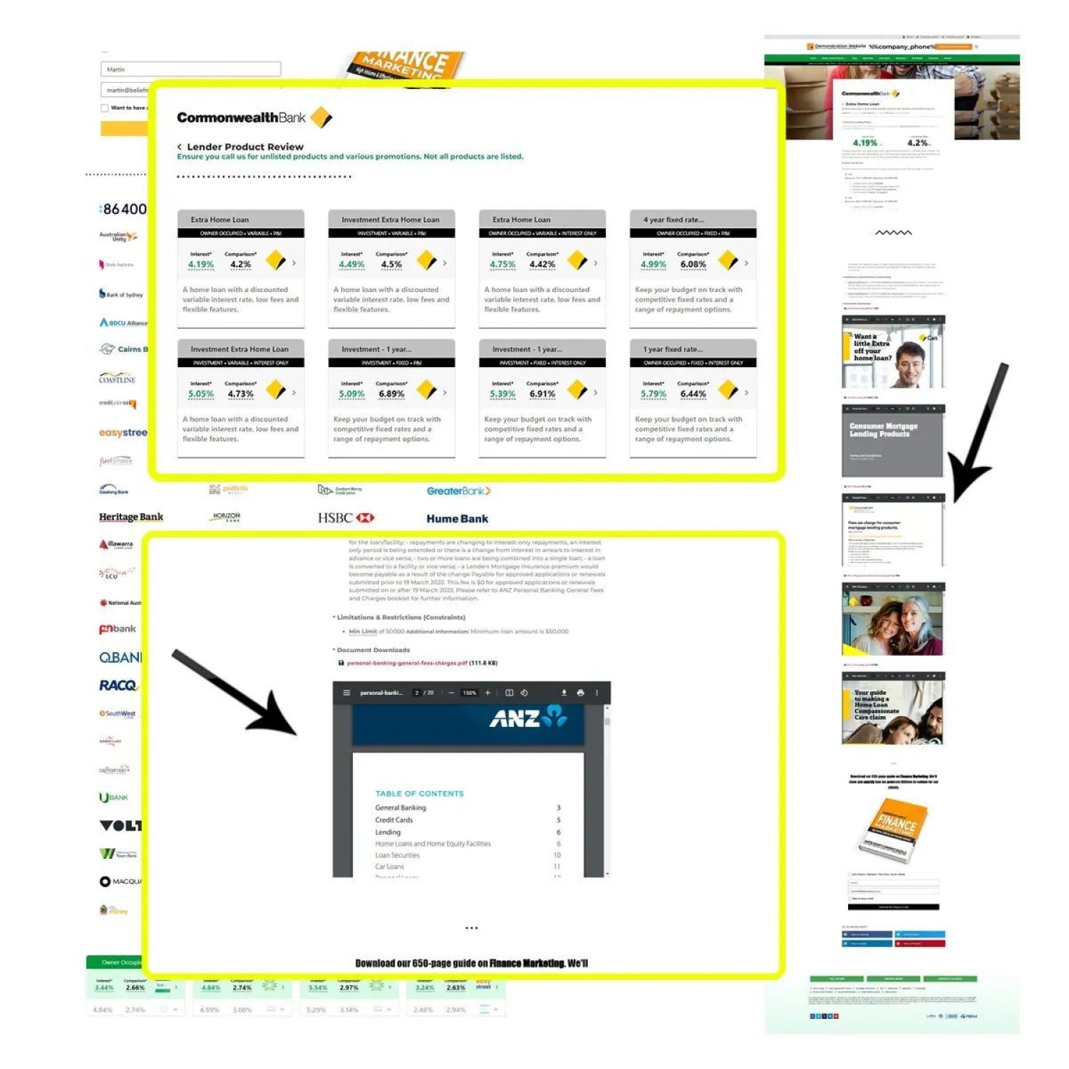 Shown on the far right of the image is a page where multiple PDF documents are referenced by a lender and returned on a single page. Most lender product pages include less than two documents.