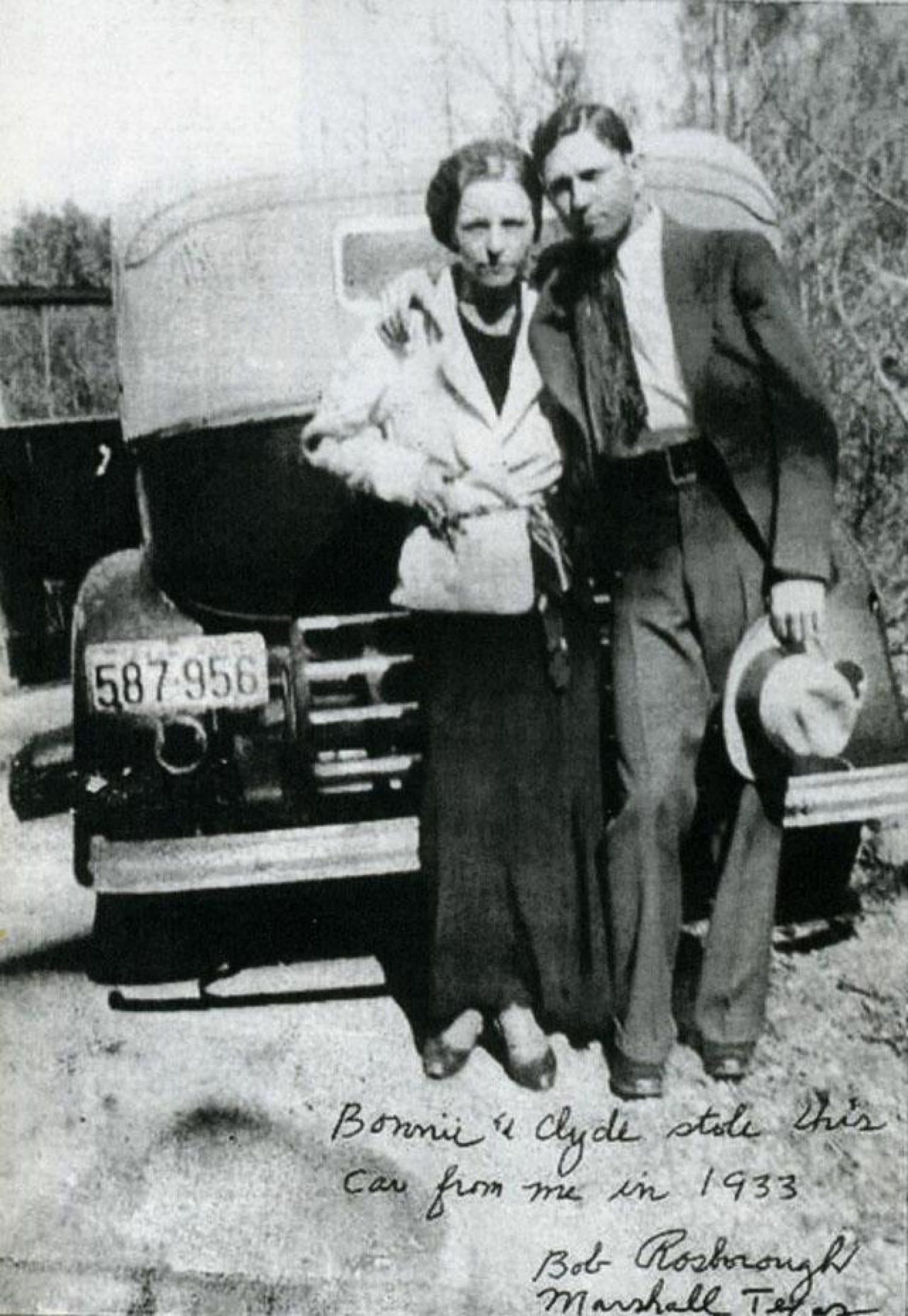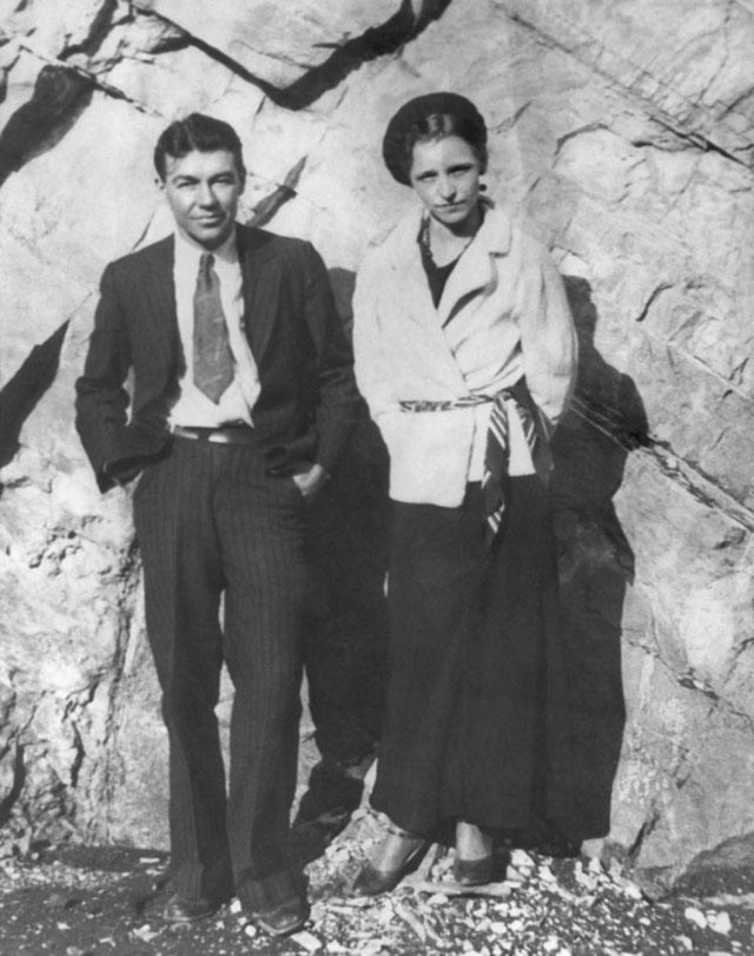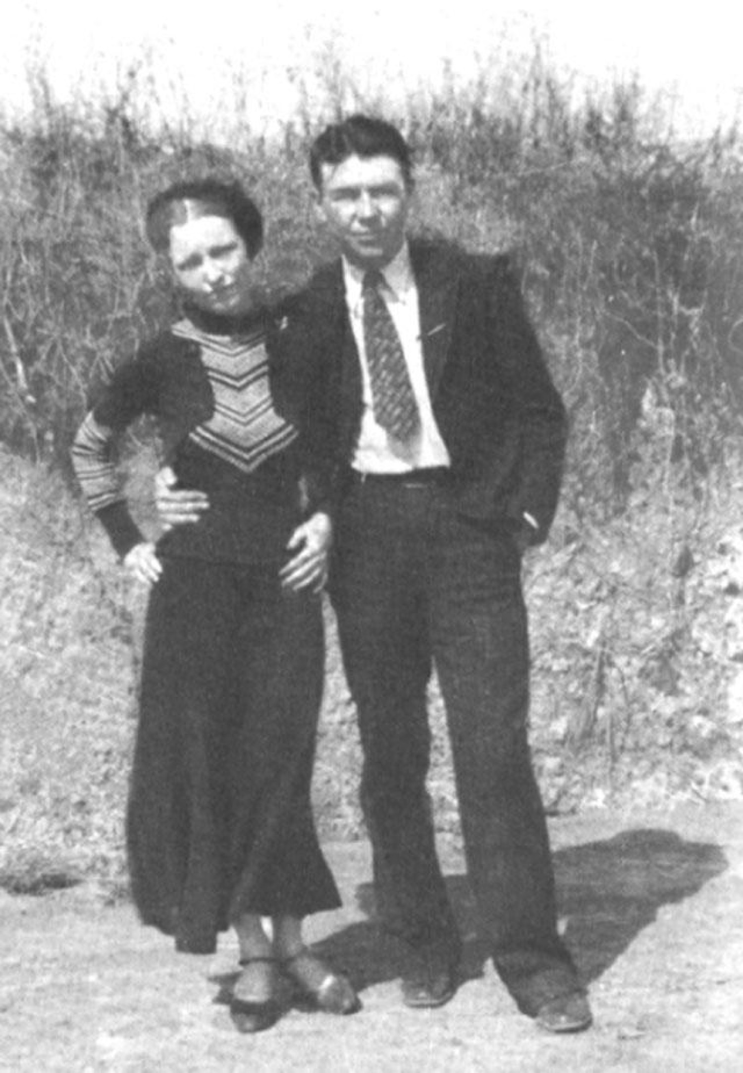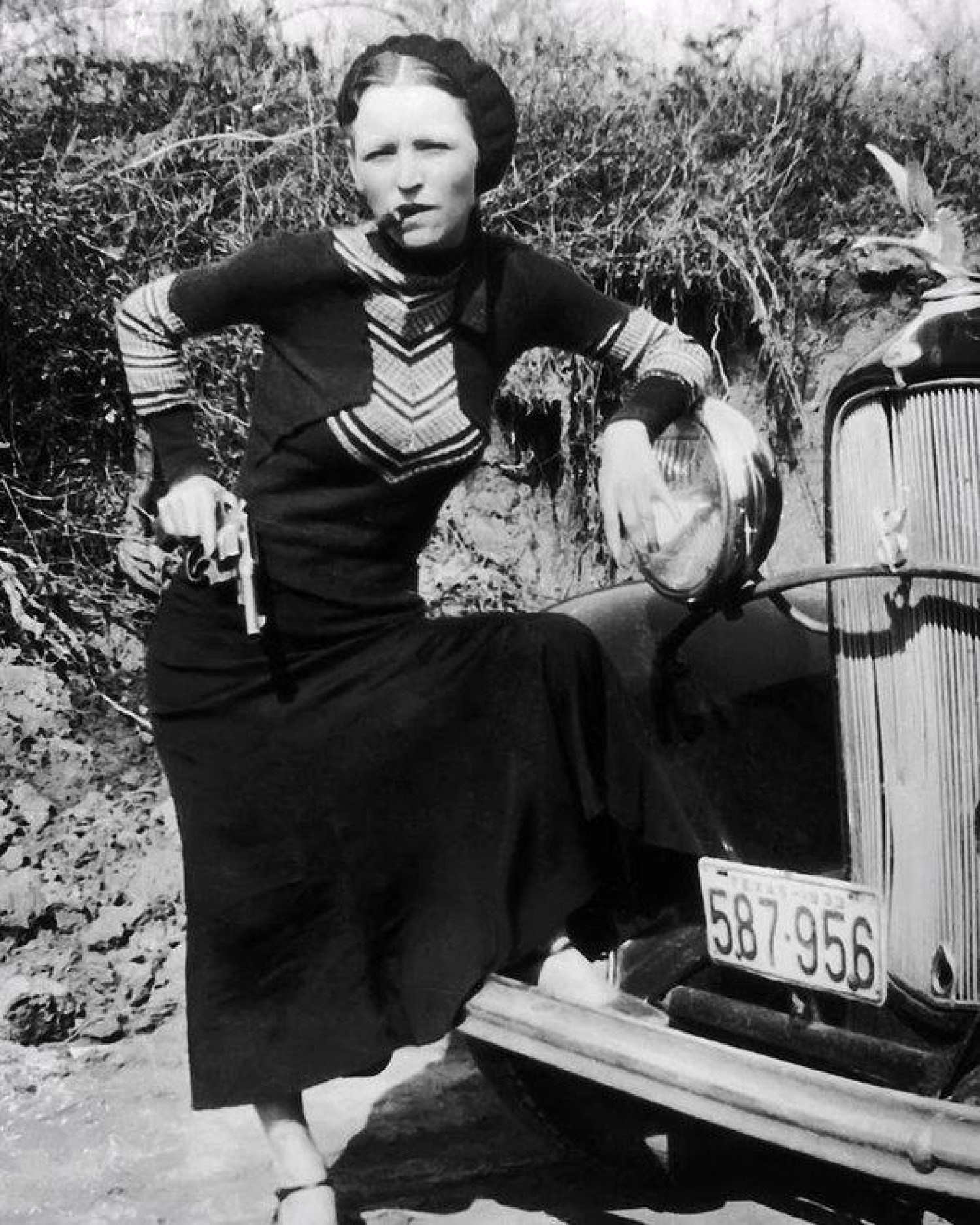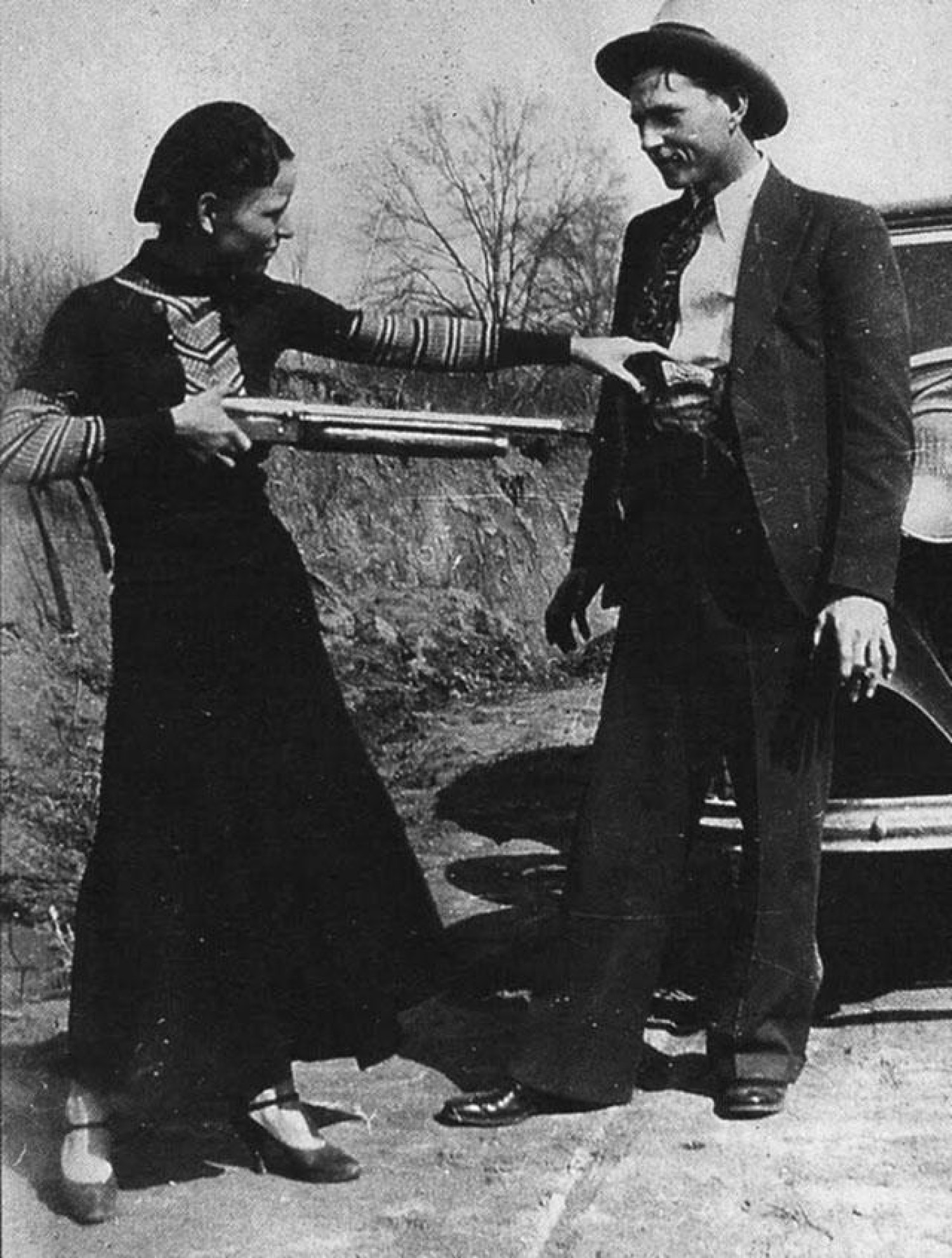 Bonnie Elizabeth Parker (October 1, 1910 " May 23, 1934) and Clyde Chestnut Barrow (March 24, 1909 " May 23, 1934) were an American criminal couple who travelled the Central United States with their gang during the Great Depression, knownfor their bank robberies, although they preferred to rob small stores or rural funeral homes. Their exploits captured the attention of the American press and its readership during what is occasionally referred to as the "public enemy era" between 1931 and1934. They are believed to have murdered at least nine police officers and four civilians. A photo of Parker posing with a cigar came from an undeveloped roll of film that police found at an abandoned hideout, and the snapshot was published nationwide. Parkerdid smoke cigarettes, although she never smoked cigars. According to historian Jeff Guinn, the photos found at the hideout resulted in Parker's glamorization and the creation of myths about the gang.