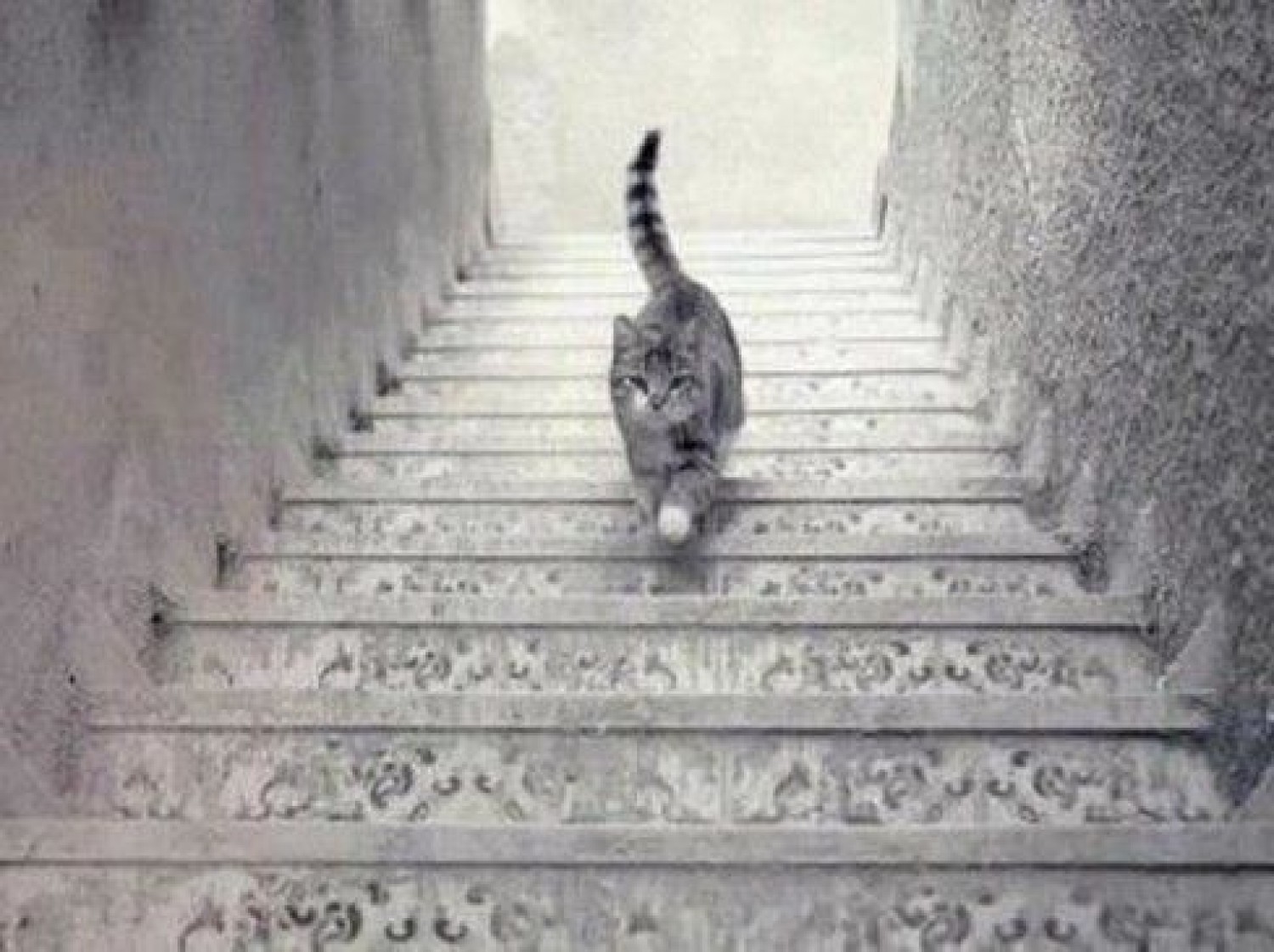 This is kind of like Schrodinger's cat. He's simultaneously going up and down the stairs at the same time... until you decide for yourself. Your initial response is said to illustrate personality type (via that right/left brain mumbo jumbo). For me, it's just another tool that illustrates how different conclusions can be drawn based on the same data.