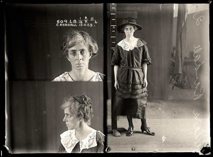 Clara Randall worked as a travelling saleswoman for a jewellery company. She reported to police that her Bondi flat had been broken into and a quantity of jewellery stolen. It was later discovered she had pawned the jewellery for cash.A career criminal, Randall was sentenced to 18 months with light labour. DOB: 1884.