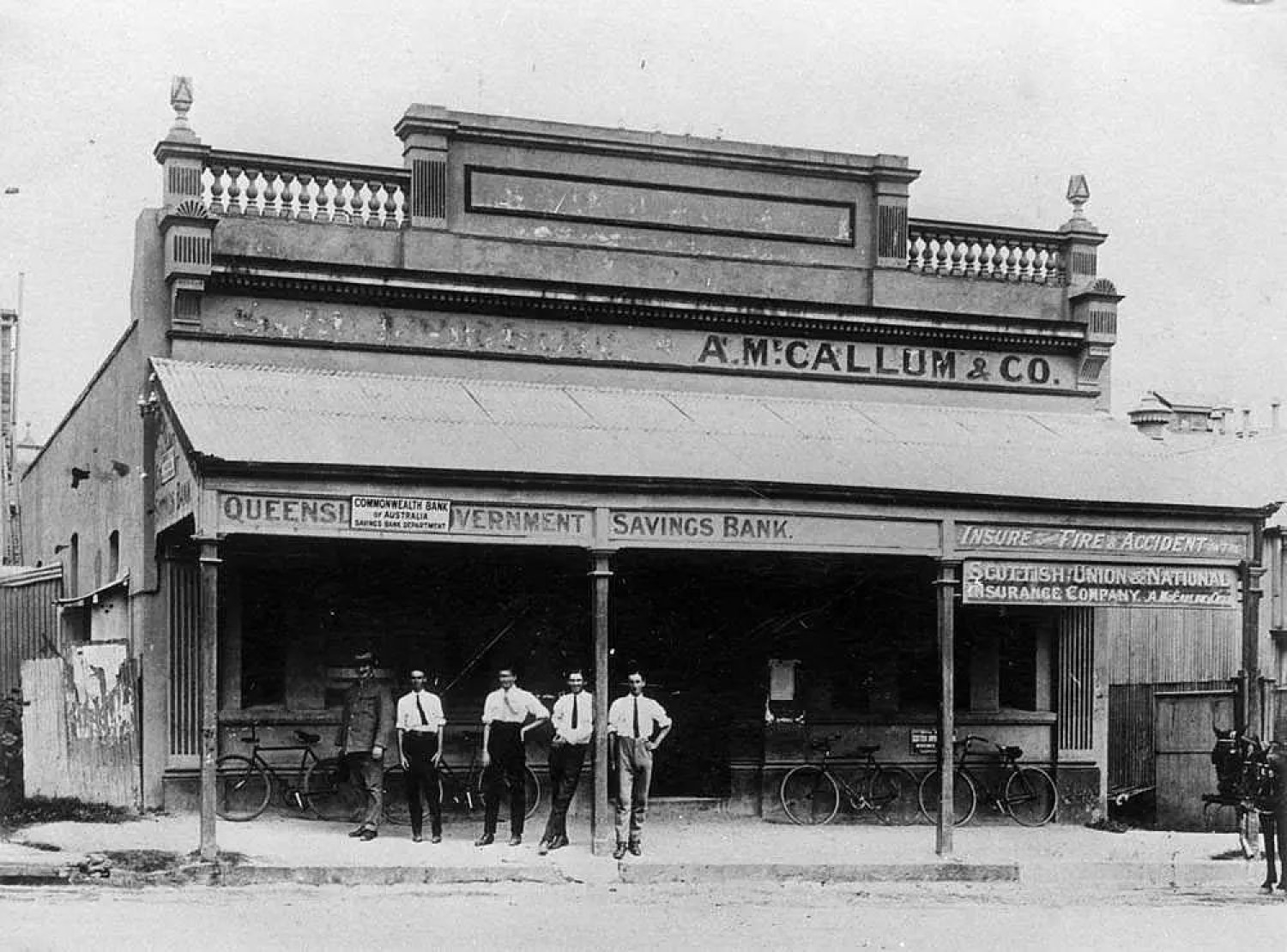 Charters Towers branch of the Commonwealth Bank, 1920. The Queensland Government Savings Bank, enacted by legislation in 1861, was operated by the Queensland Government.