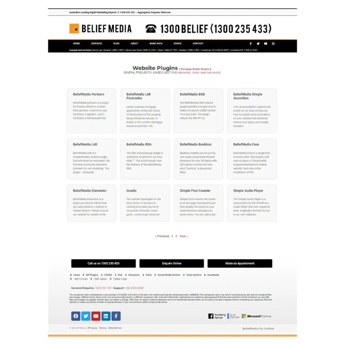 If you're a broker looking to add a little flair to your website, we have a number of free plugins available that'll introduce features into your business that your won't find elsewhere. Visit BeliefMedia.com.au/plugins and click the finance tab. We've got a couple of hundred plugins but only a selection have been added to our archive.