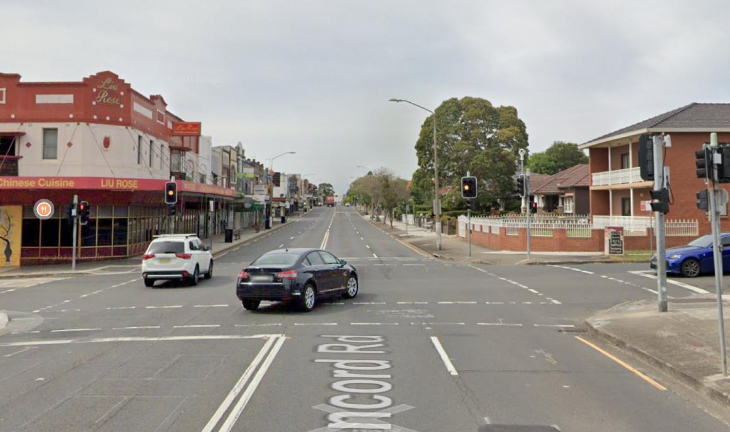 Concord Road, around 40 yards north of Correys Ave., November 1947 (looking South). The road Is quiet and unsealed. The ‘modern day’ picture comes to us by way of Google Maps and shows the Lui Rose Chinese Restaurant on the left – a local time-capsule itself (you should see inside). Just to the left (on the northern side ofCorreys Ave. is Strathfield North Public School, and to the right is the Concord Presbyterian Church.