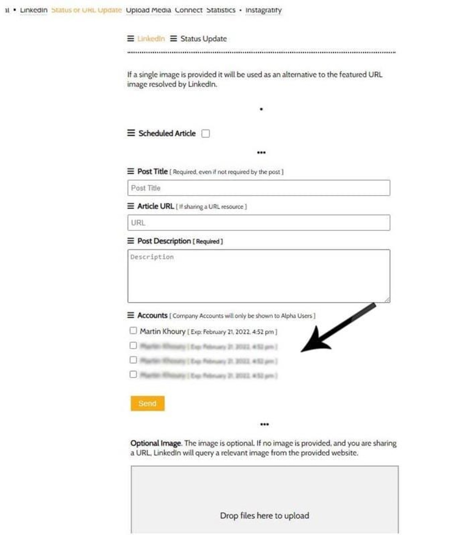 This message was written on Instagram, and it is the easiest way of creating content for LinkedIn, Facebook, GMB, or elsewhere. However, there's creation panels on Yabber for all social and professional networks. Pictured is a simple post panel for LinkedIn (note the support for multiple profiles).