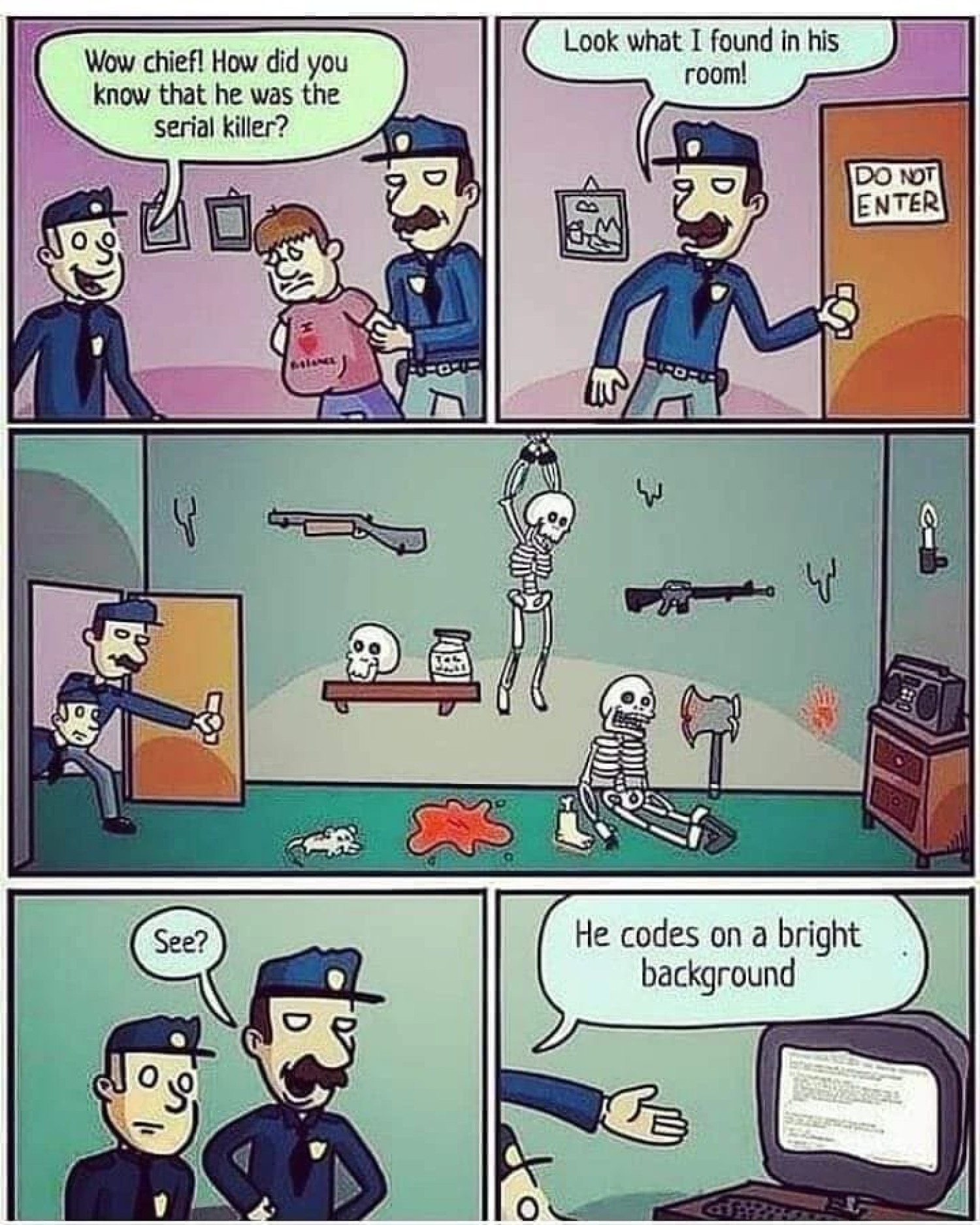 This defines me and Domenico. Domenico uses an editor on a dark background while I *still* code directly into Notepad on a light background.