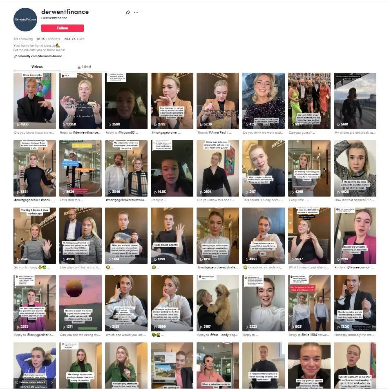 Rhianna Farnan from Derwent Finance has a really interesting presence on TikTok. Clearly aimed at the Millennial/Gen Z market, her presence and personality is platform and age appropriate, and she's getting good results (one of her videos has over 1.7m views leading to some media attention).