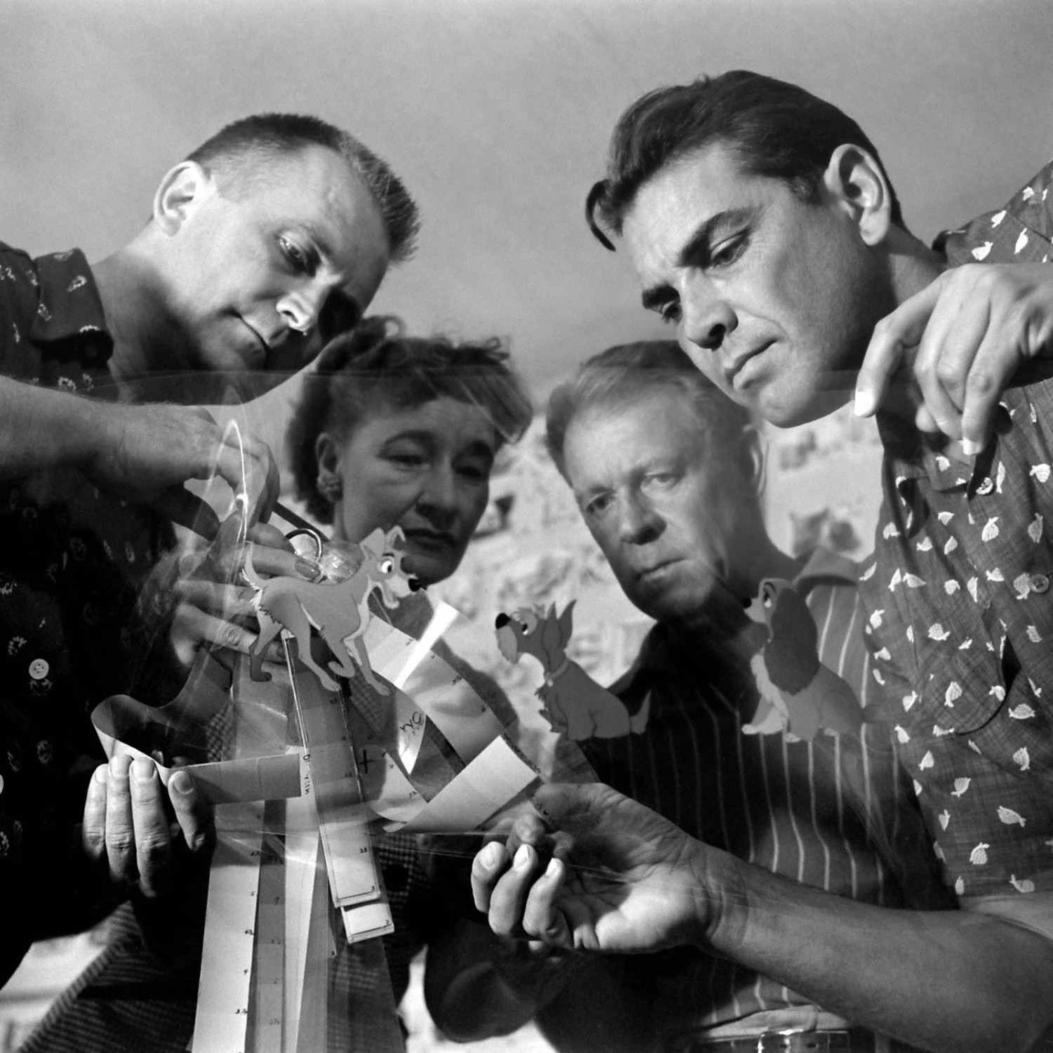 Disney artists check a cel from the film, TheLady and the Tramp. Photo: Alfred Eisenstaedt - The LIFE Picture Collection.