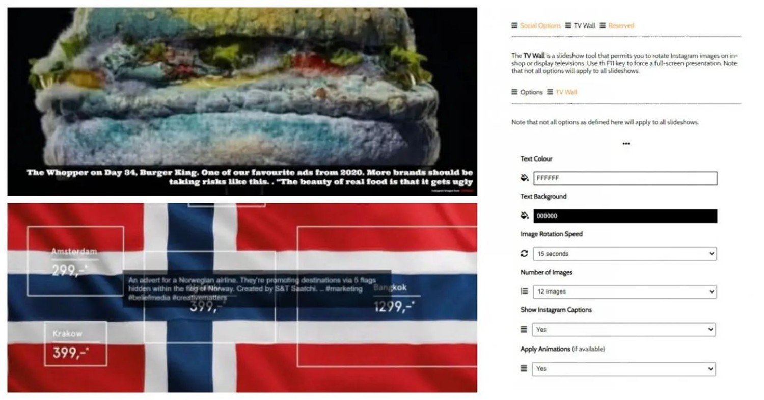 One of the lesser-used features of Yabber is the TV Wall. If you have a shop-front with a display TV, you may use our full-screen slideshow to display an up-to-date and dynamic feed from Instagram.