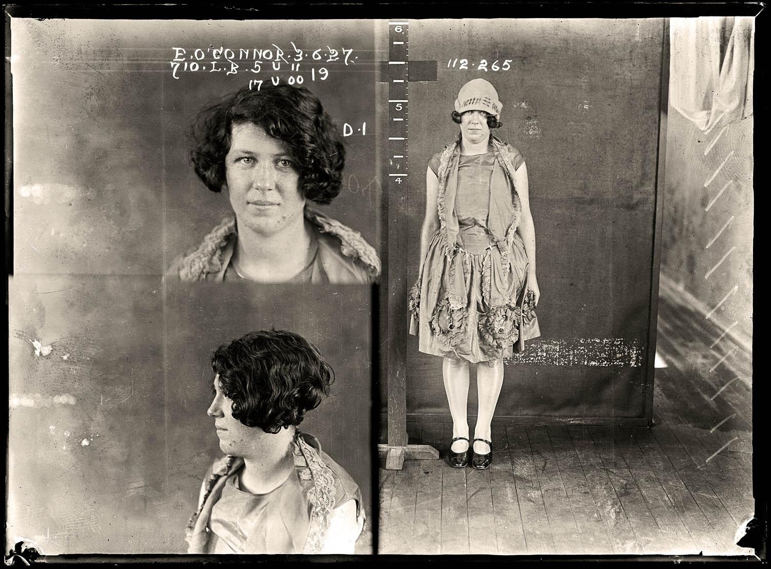 Convicted of stealing. Eileen O'Connor first appears in police records as a 'missing friend', or missing person. She is eventually arrested for stealing a wallet and is described by police with the odd epithet 'inclined to be weak'. Aged17. Part of an archive of forensic photography created by the NSW Police between 1912 and 1964.