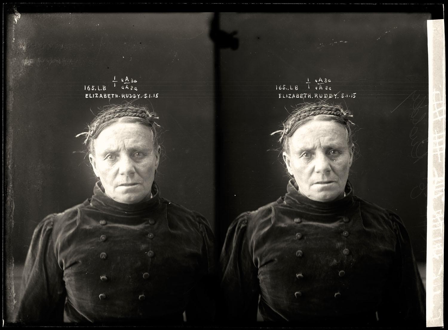 Titled "Elizabeth Ruddy, criminal record number 165LB, 5 January 1915. State Reformatory for Women, Long Bay."