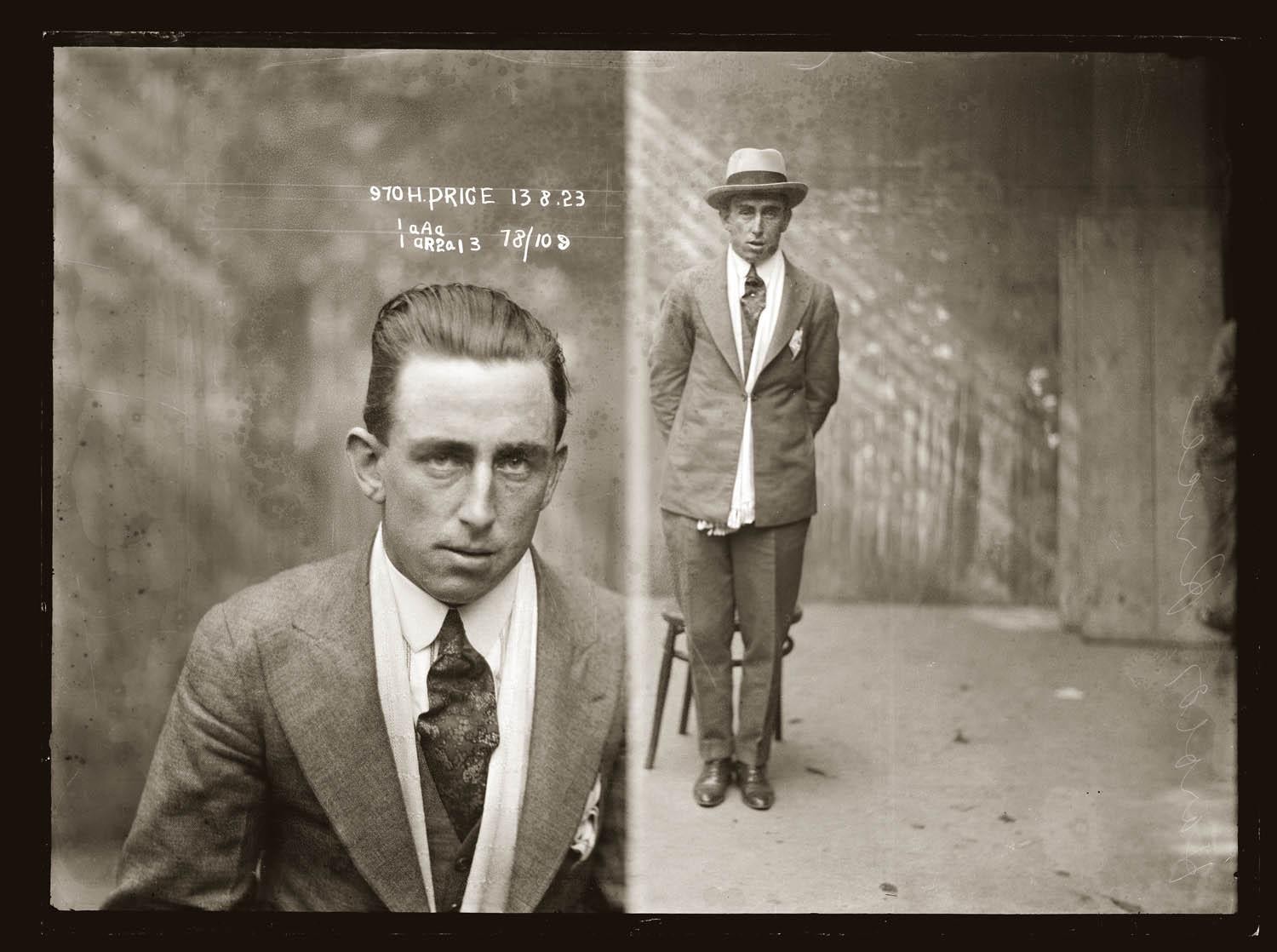 Titled "Mug shot of Harold Price, 13 August 1923, Central Police Station, Sydney."
