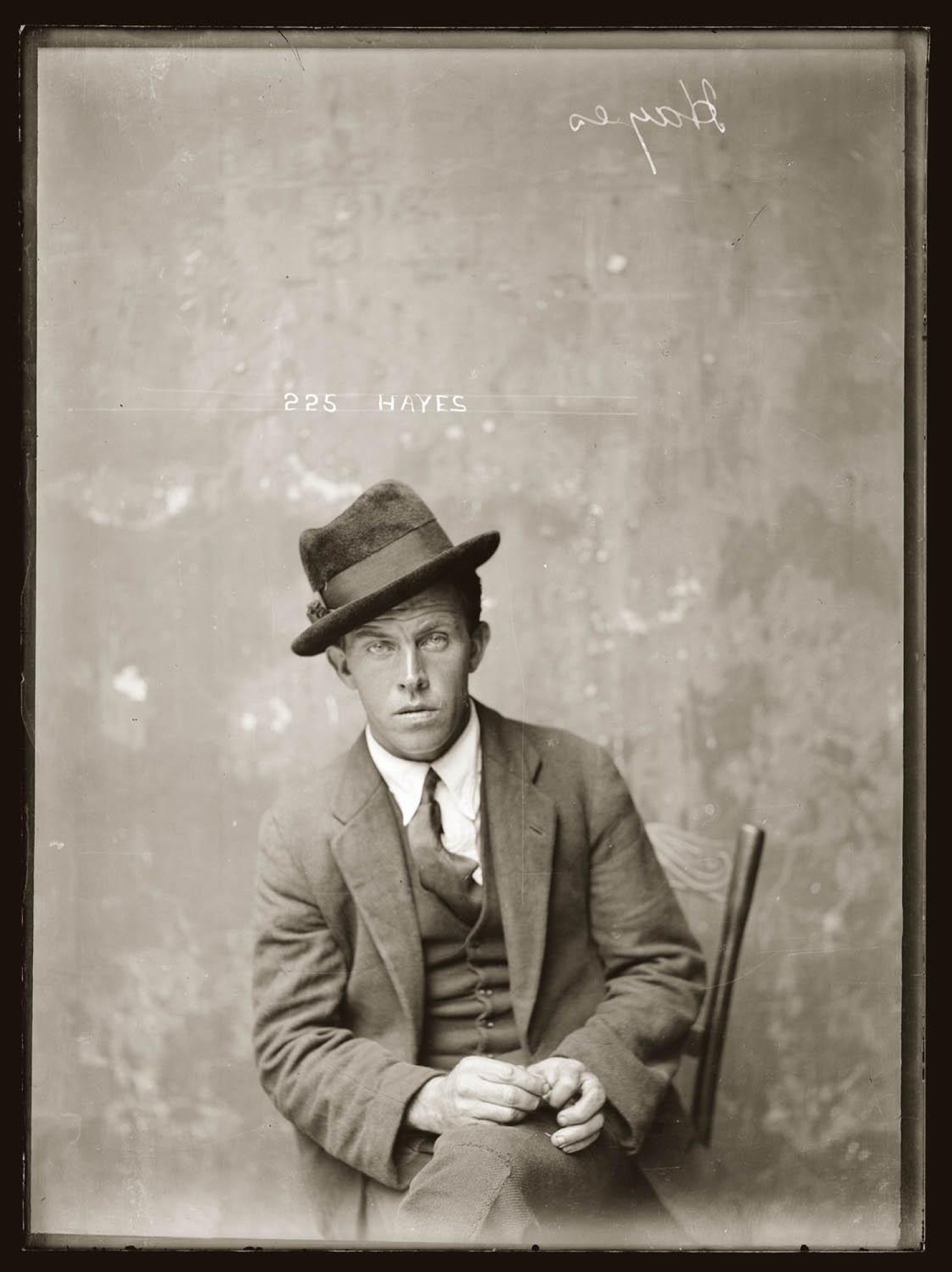Mug shot inscribed 'Hayes'. No details known. Early 1920s, presumably Central Police Station, Sydney. Source: Sydney Living Museum (Justice & Police Museum).