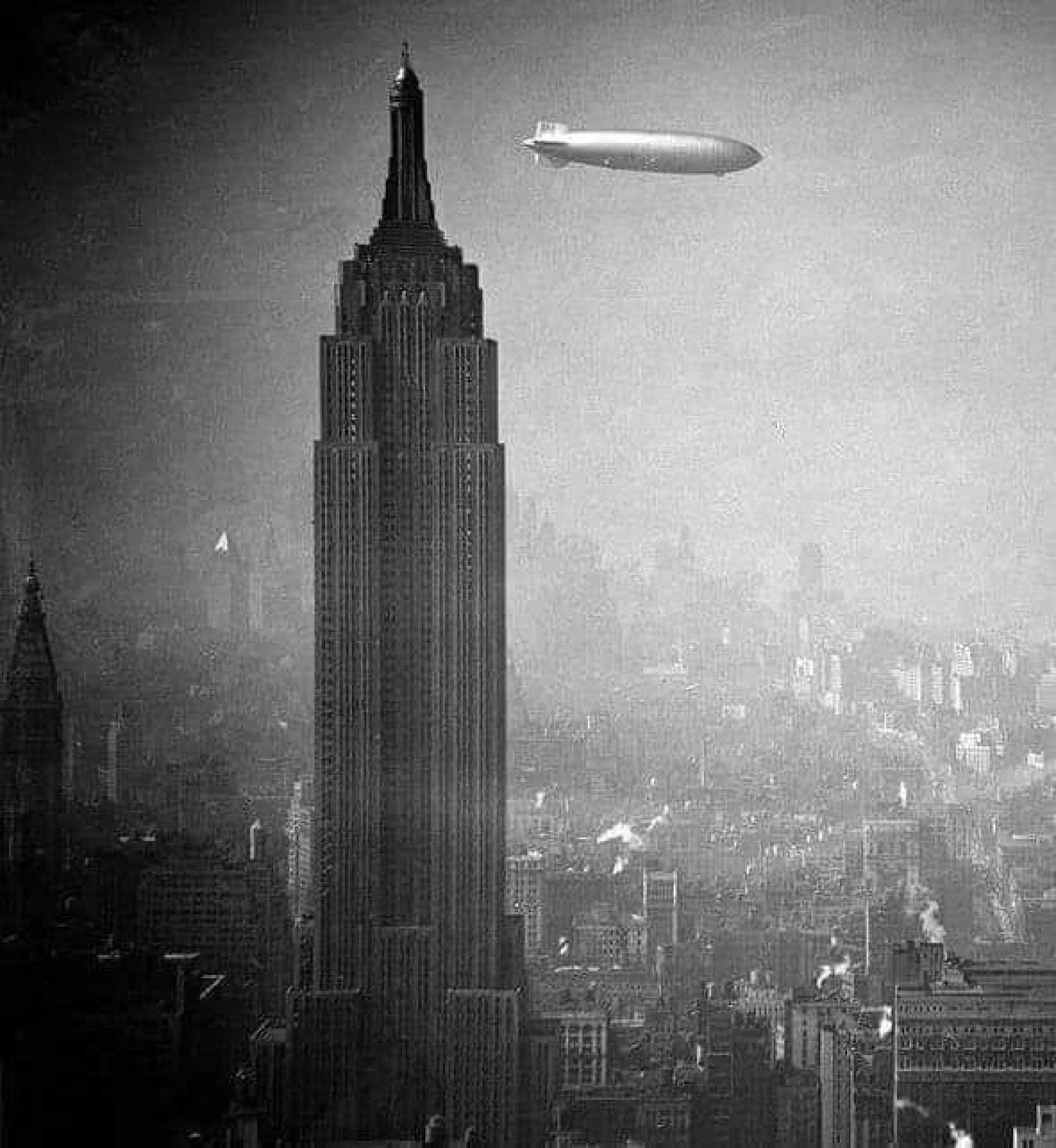 The Hindenburg passing Manhattan and the Empire State Building, August 8th, 1936. Less than a year later the floating time-bomb will be destroyed by flames at Lakehurst, New Jersey.