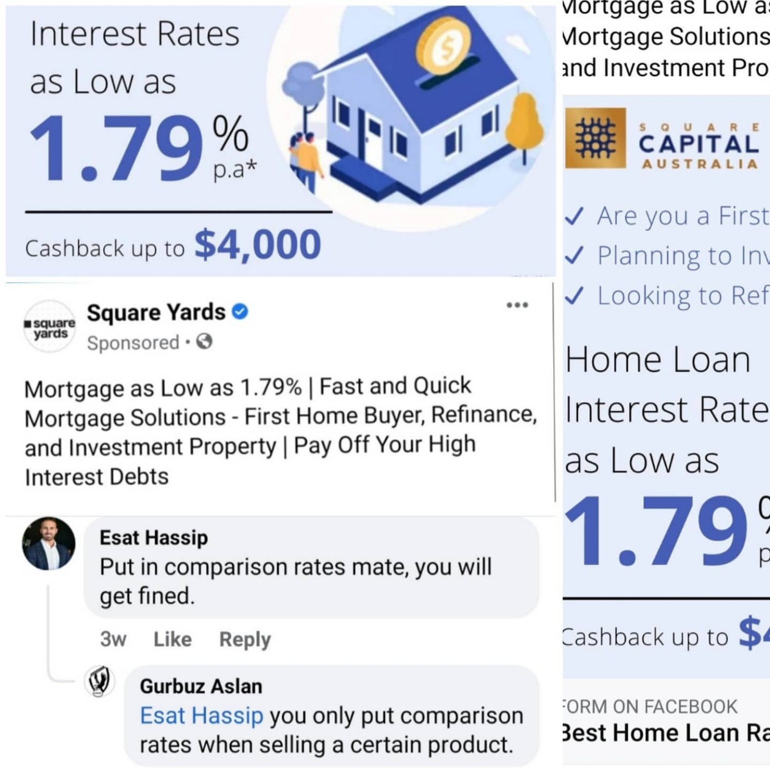 Another example of a seriously dodgy and non-compliant Facebook advert coming out of India. It worries me that brokers are subscribing to services like this when it introduces clear compliance issues into their operation (and a rubbish funnel experience). Check out their response to a comment suggesting a comparison rate was required (it is, and it's finance marketing 101). There's seven very clear breaches in this advert, and more if we want to get a little picky.