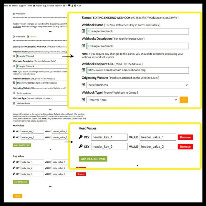 You may add your own header and body data to the request (kind of advanced, but not difficult), and all data submitted to Yabber is sent to the destination endpoint by default.