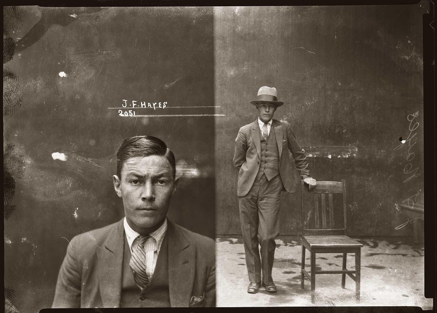 John Frederick 'Chow' Hayes, Special Photograph number 2051, 6th November 1930, Central Police Station, Sydney. Source: Sydney Living Museum (Justice & Police Museum).