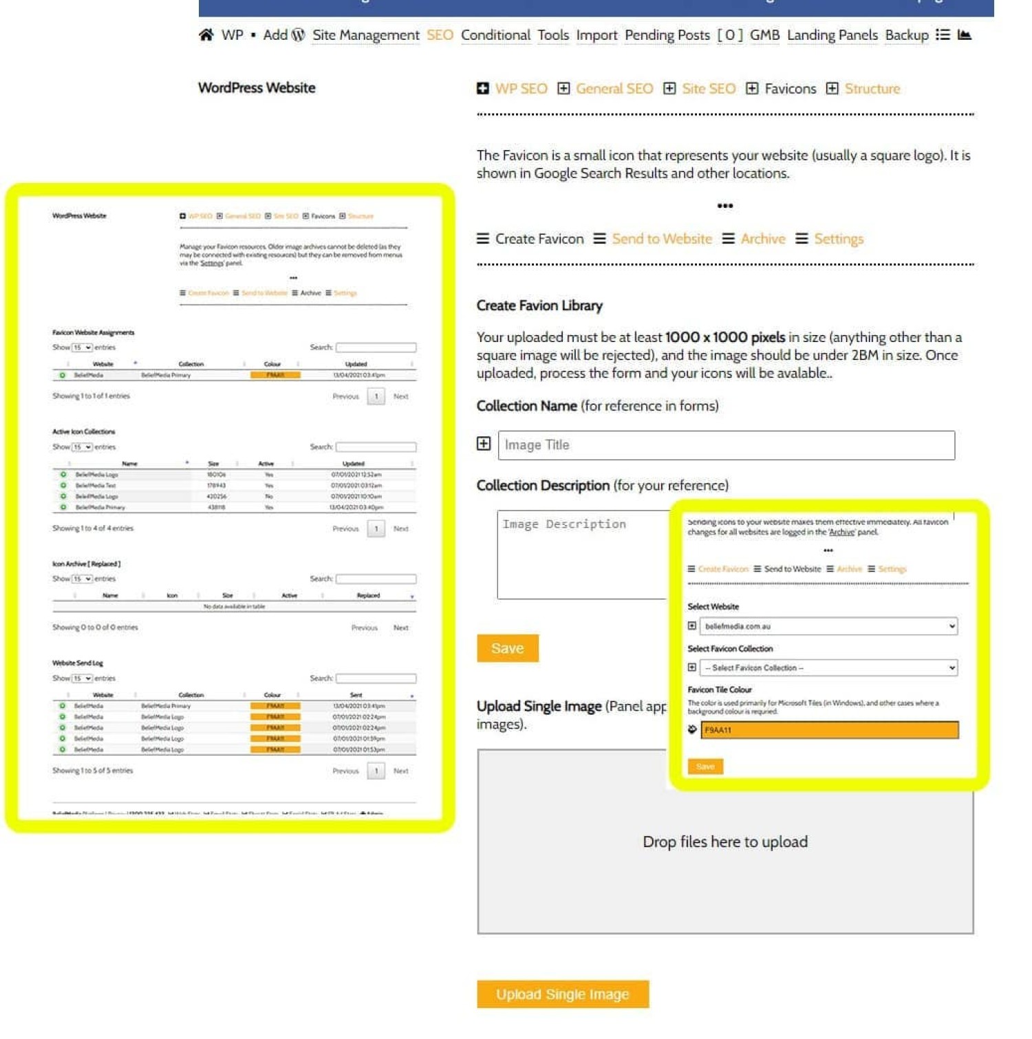 Our solution to the ongoing favicon dilemma is simple (the dilemma being that the SEO object is usually ignored). You create a single icon, upload it to Yabber, Yabber creates a full suite of icons, and you send the icons to your nominated website. If automation is enabled for the module, and if and when a new icon makes its way into standard practice, we'll update your website in real-time with a new icon set. Simple.