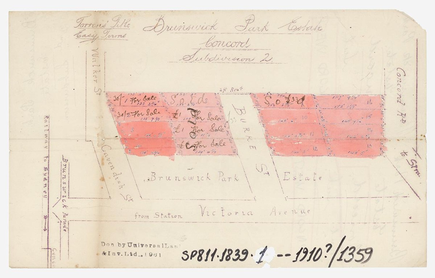 Shown are some fascinating documents relating to the early allotment and then subdivision of Government land in the Concord West area between 1836 and 1910. Roughly speaking, the average wage in 1890 was around 600 pounds, so a propertywould cost you around 3months salary (loans were often paid at around 5% over 3-5 years, with interest calculated on the balance monthly). You wouldn’t find a block for less than a million today.
