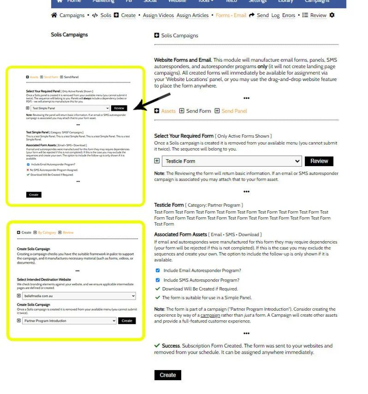 We actioned the first test campaign today with a relatively new broker. He chose to launch a Facebook campaign... but the same automation (associated with his selected campaign) was available to assigned panels outside of the promoted landing page.