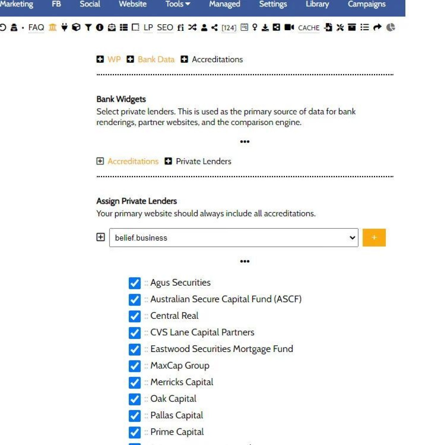 Note to clients. Minor update, but worthy of mention. The lender accreditations page now includes a selection of private lenders. When the lender logos are rendered to your website, the lender logos will not link to any product pages.