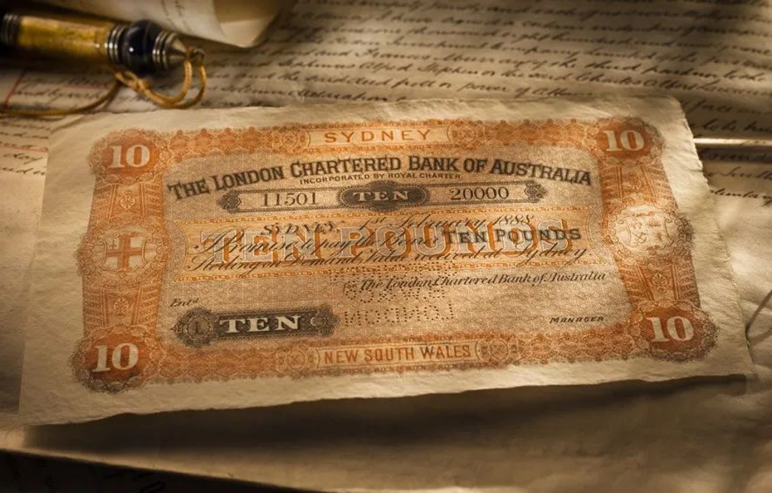 Australia’s paper currency took on a sophisticated elegance with the establishment in 1817 of the Bank of New South Wales, the nation’s first private bank. And the issue of the bank’s circulating paper notes. The crude handwritten promissory notes that had proliferated throughout the colony soon after settlement forming an ad hoc unofficial paper currency had all but disappeared.