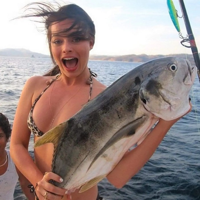 Margot Robbie enjoying some fishing, 2014. Looking as gorgeous as ever as a brunette.
