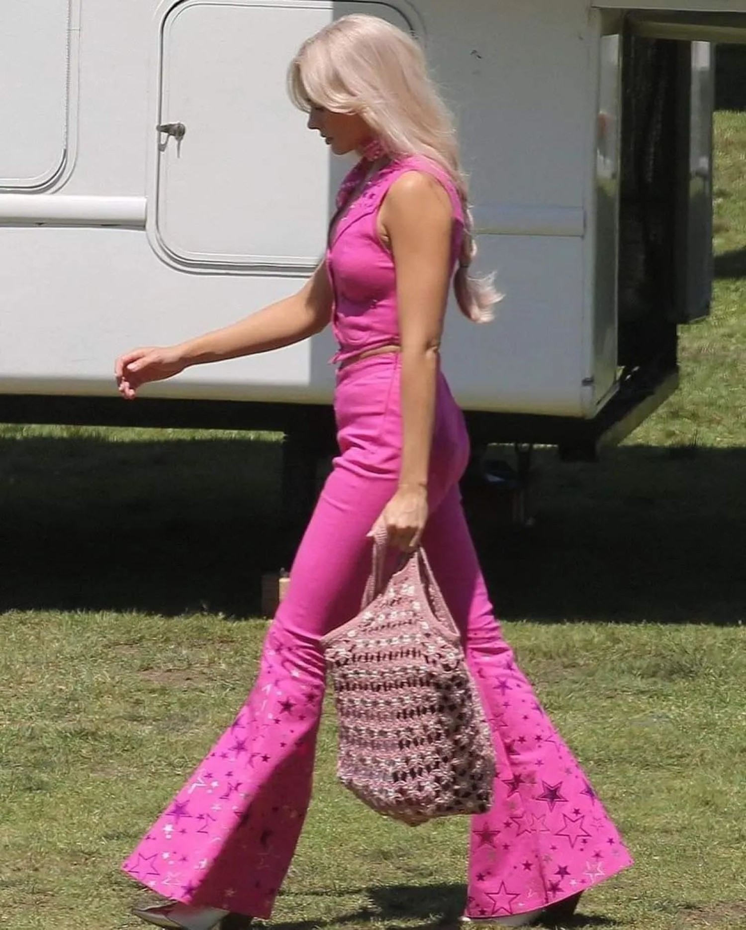 Margot Robbie on set of the 'Barbie' movie.