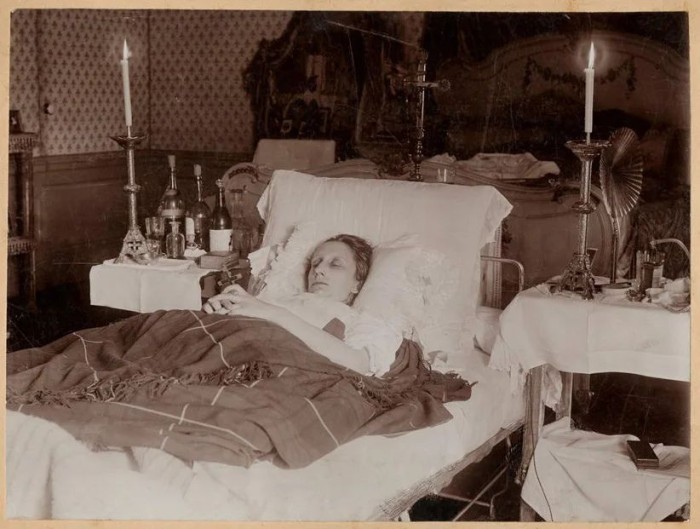 Marie Louise of Bourbon-Parma, Queen consort of Bulgaria, on her deathbed. She died in 1899, aged 29, twenty four hours after giving birth to her fourth child.