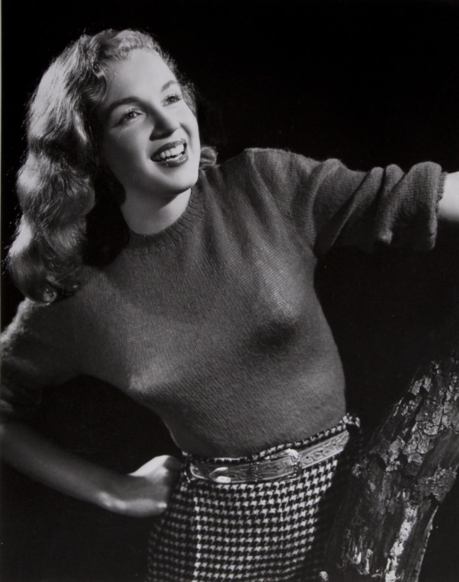Marilyn Monroe by Bruno Bernard, 1945. It's said that this collection was submitted by Bernard (with others) to Fox. Toward the end of 1946, Marilyn Monroe signed her first studio contract with Twentieth Century Fox. It represented herintroduction into the film world as a working actress. The agreement paid Monroe $125 a week and helped her become a multi-tool actress with lessons in acting,singing and dancing.