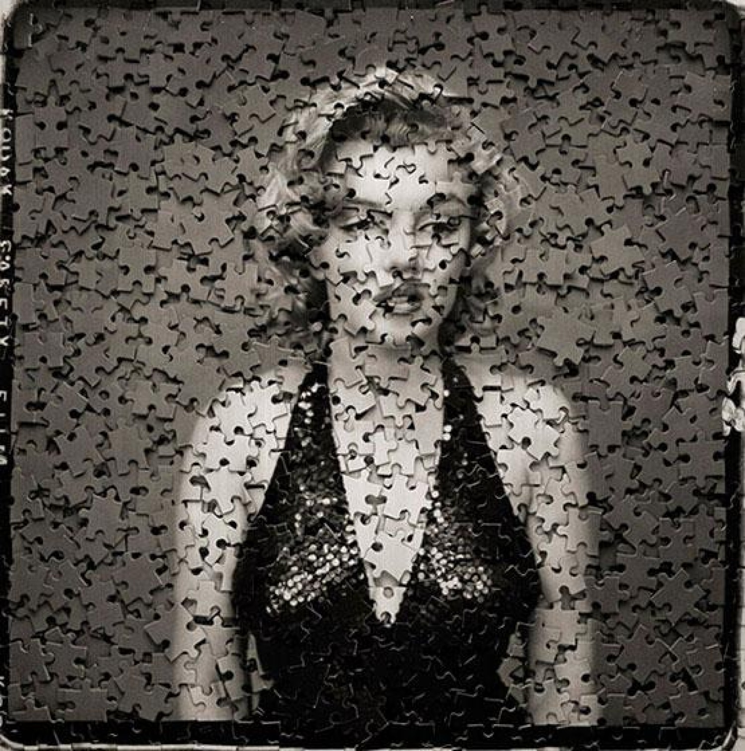 Avedon captured one of the most photographed stars in the world with her public facade down, producing images that provides a rare glimpse of her inner life. It has likely become his single most recognised photograph.The puzzle artwork is from Vik Muniz, After Avedon (Gordian Puzzle), 2007.