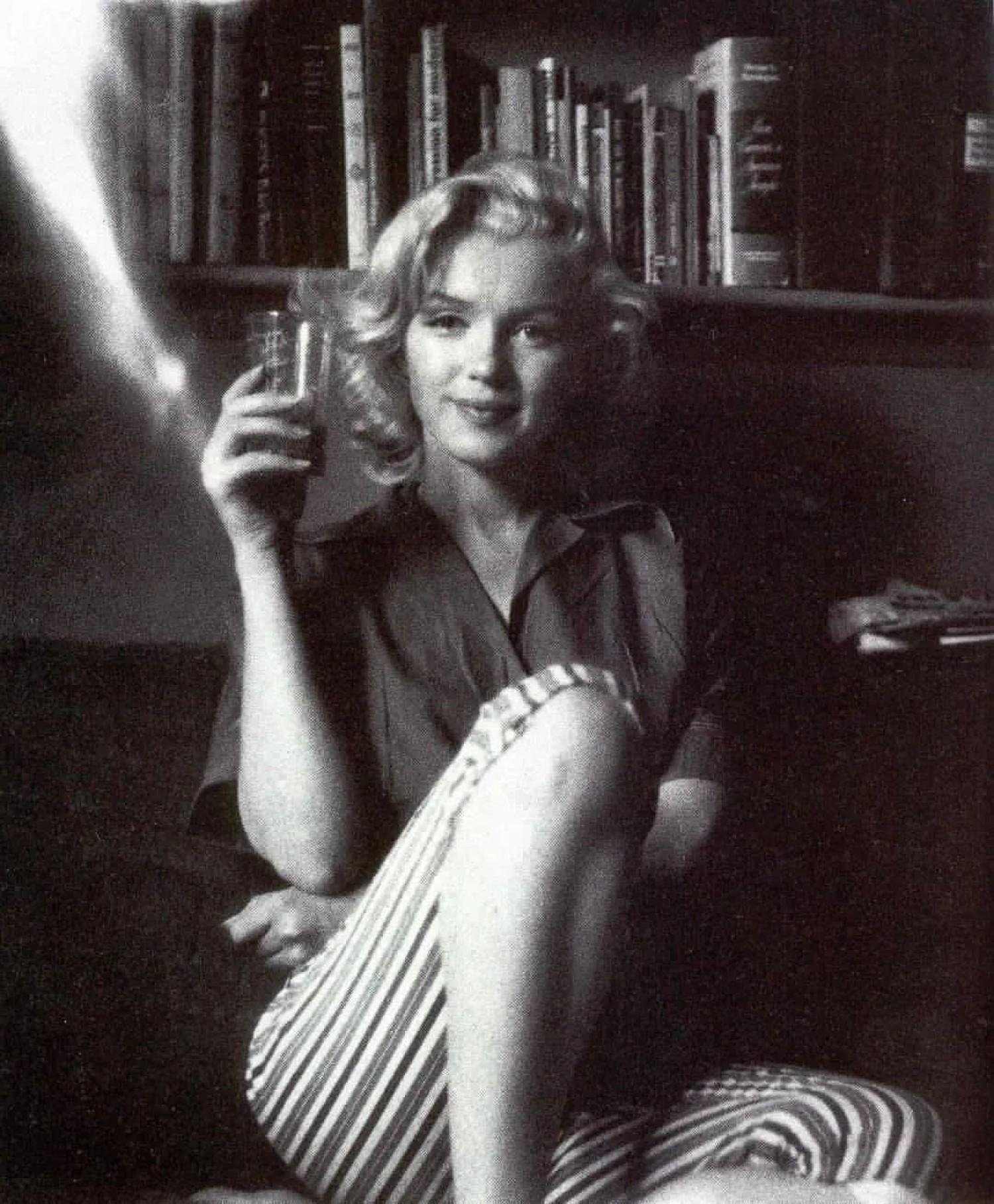 Marilyn Monroe having a drink at a friend's house, 1953. Photo by Milton Greene.