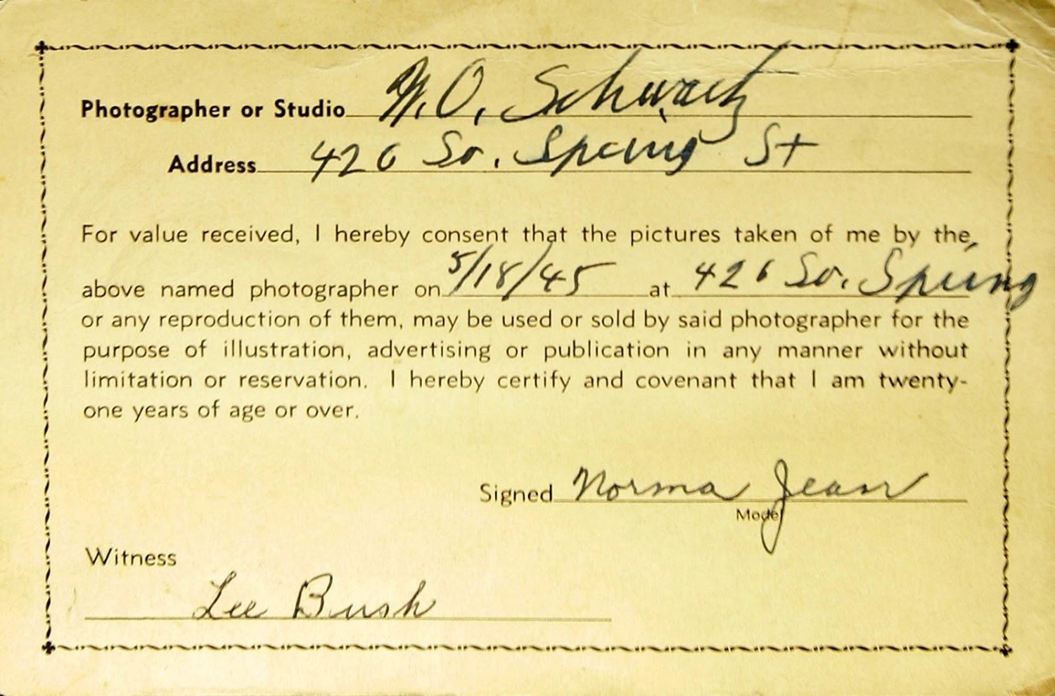 Model Norma Jeane (Marilyn Monroe) taken byM.O.Schwartz on May, 18th, 1945.