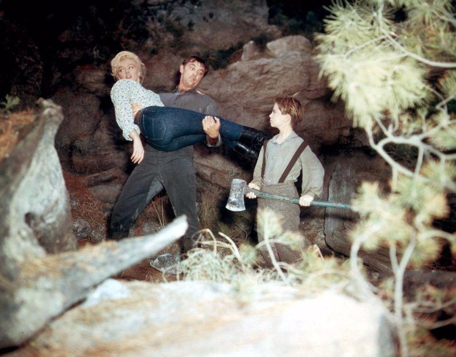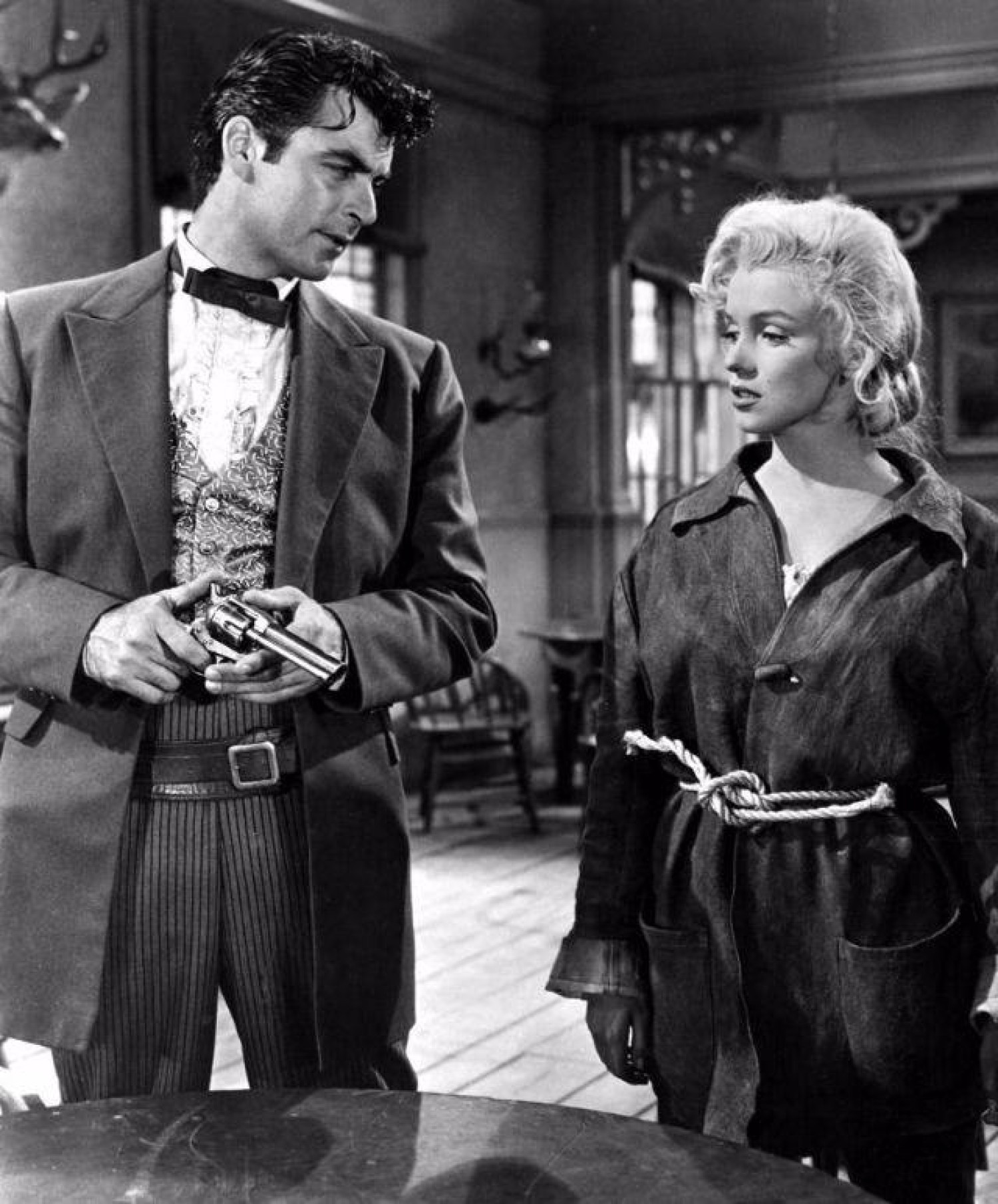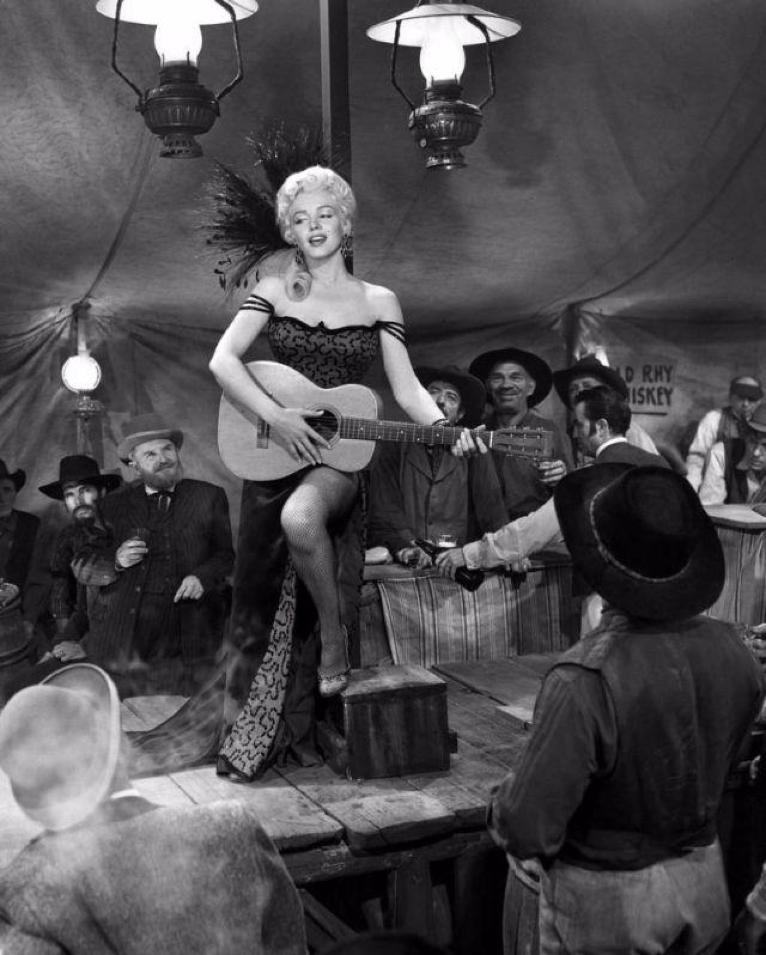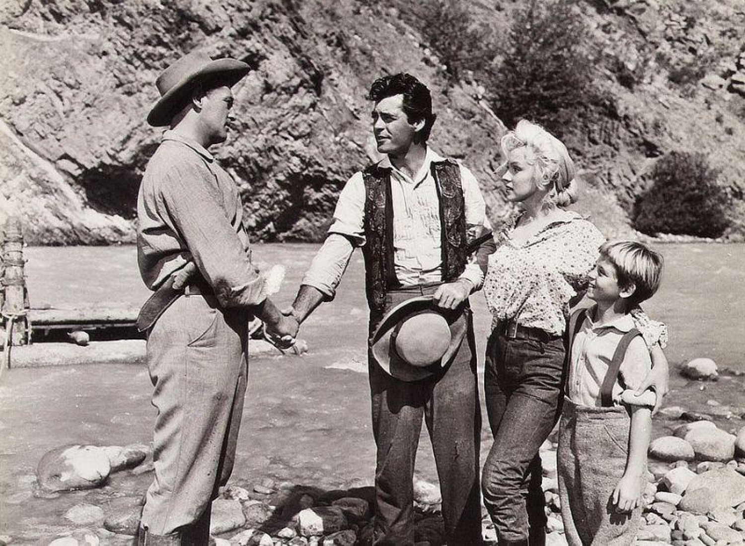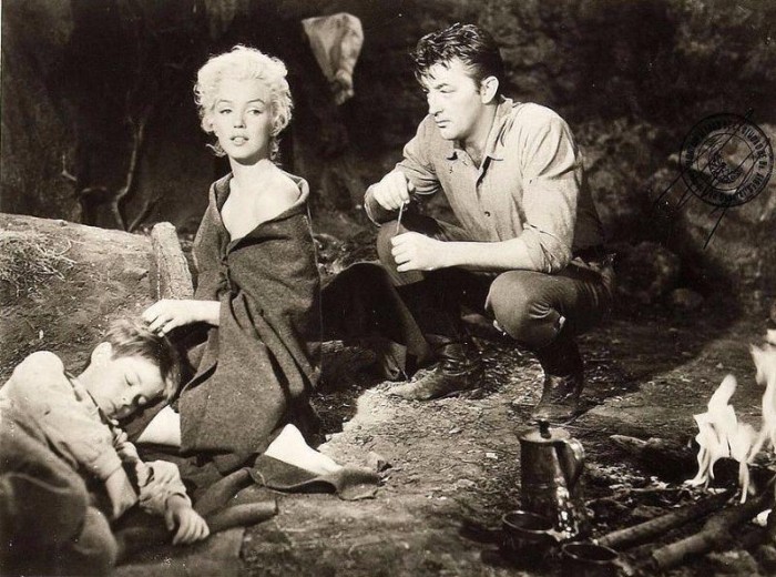 Set in the Northwestern United States in 1875, the film focuses on taciturn widower Matt Calder (RobertMitchum), who has recently been released from prison after serving time for killing one man while defending another. He arrives in a boomtown tent city in search of his nine-year-old son Mark (Tommy Rettig), who was left in the careof dance hall singer Kay (Marilyn Monroe) after the man who brought him there, as Matt had arranged, abandoned him. Matt promises Mark, a virtual stranger to him, the two will enjoy a life of hunting,fishing and farming on their homestead.