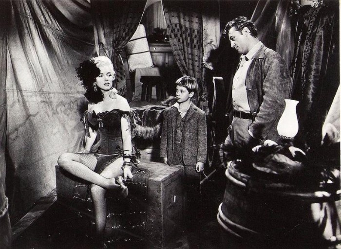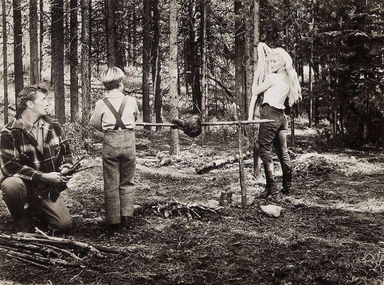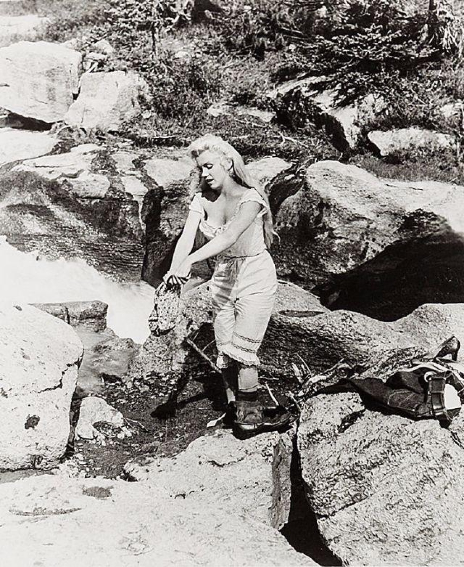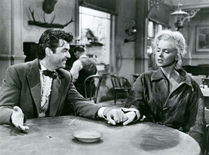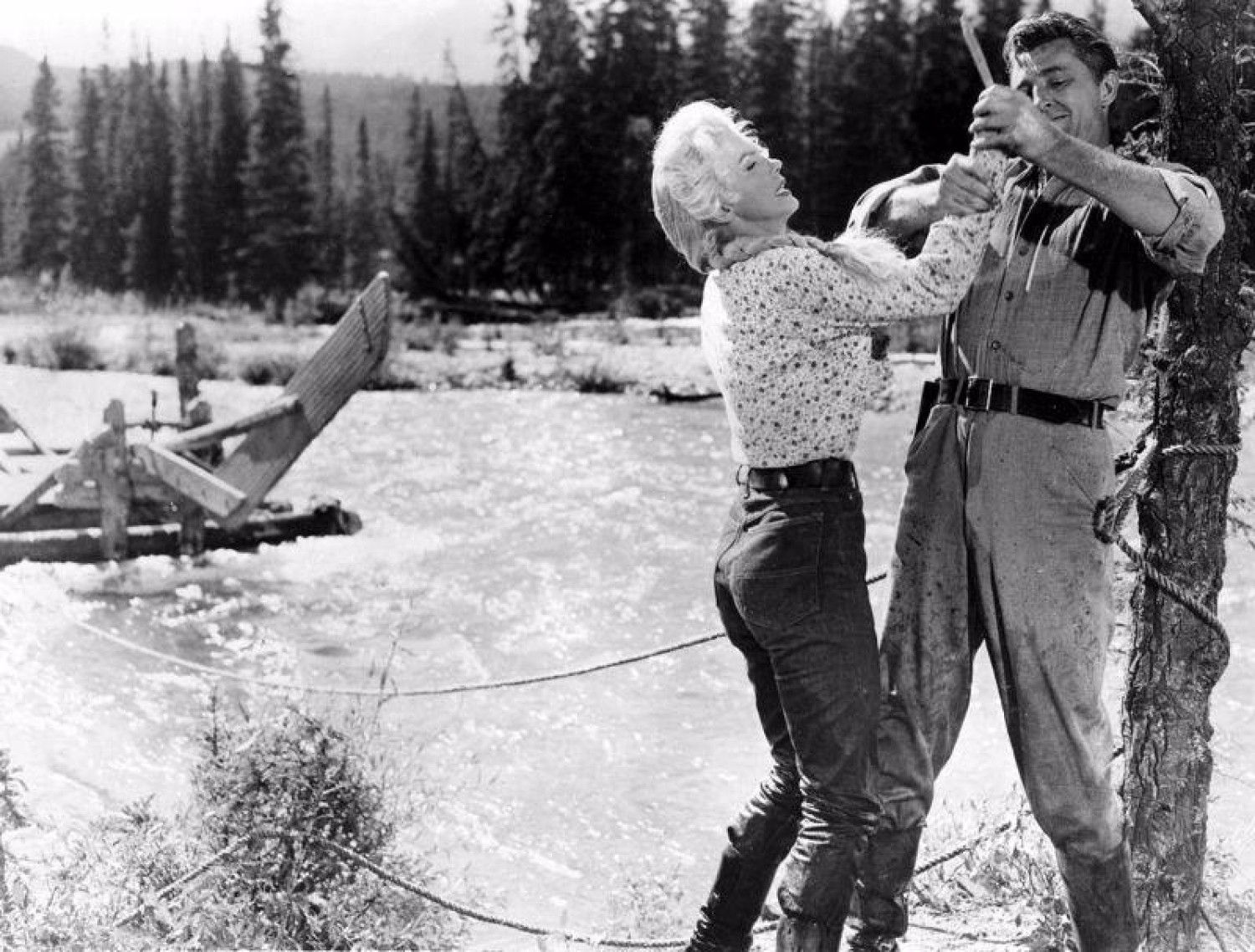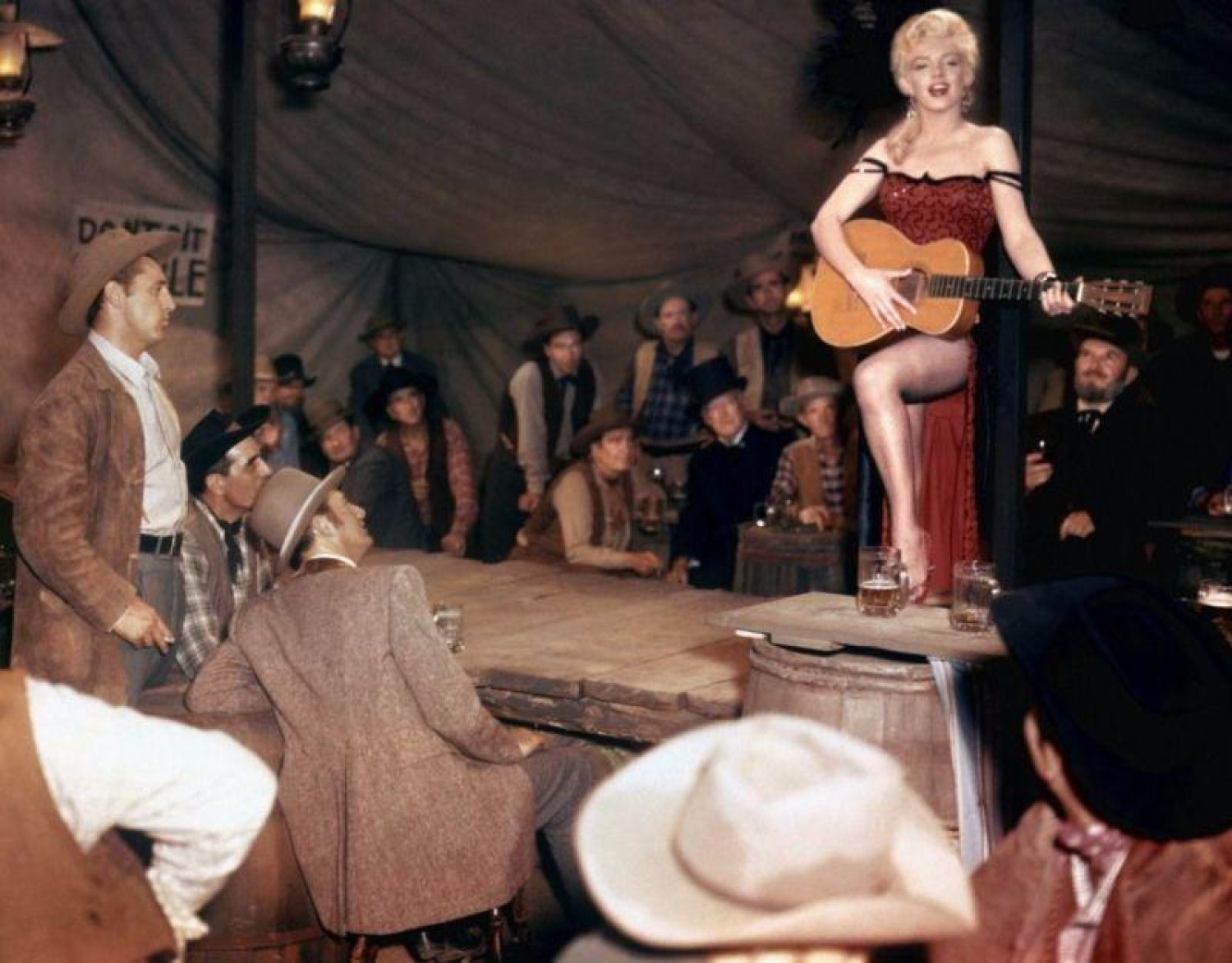 Set in the Northwestern United States in 1875, the film focuses on taciturn widower Matt Calder (RobertMitchum), who has recently been released from prison after serving time for killing one man while defending another. He arrives in a boomtown tent city in search of his nine-year-old son Mark (Tommy Rettig), who was left in the careof dance hall singer Kay (Marilyn Monroe) after the man who brought him there, as Matt had arranged, abandoned him. Matt promises Mark, a virtual stranger to him, the two will enjoy a life of hunting,fishing and farming on their homestead.
