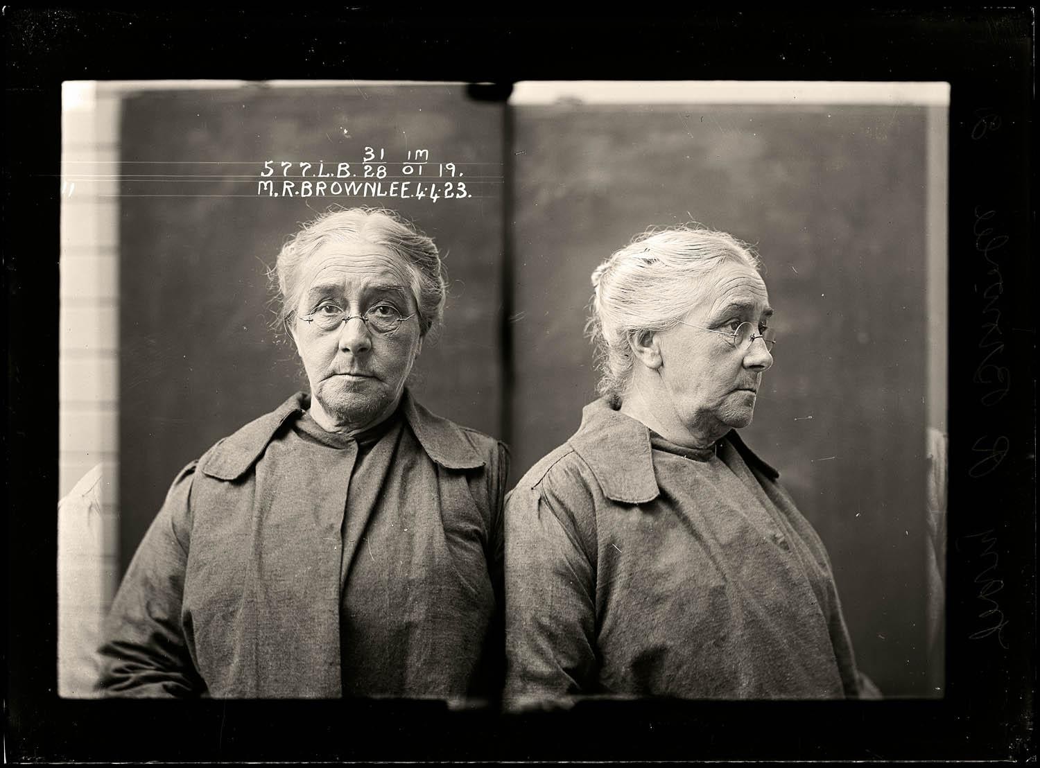 Convicted of unlawfully using an instrument to procure a miscarriage. Mary Brownlee was a backyard abortionist who was caught during an extensive police investigation. She was sentenced to 12 months light labour, but her male accomplicewas acquitted. Aged 64. Part of an archive of forensic photography created by the NSW Police between 1912 and 1964.