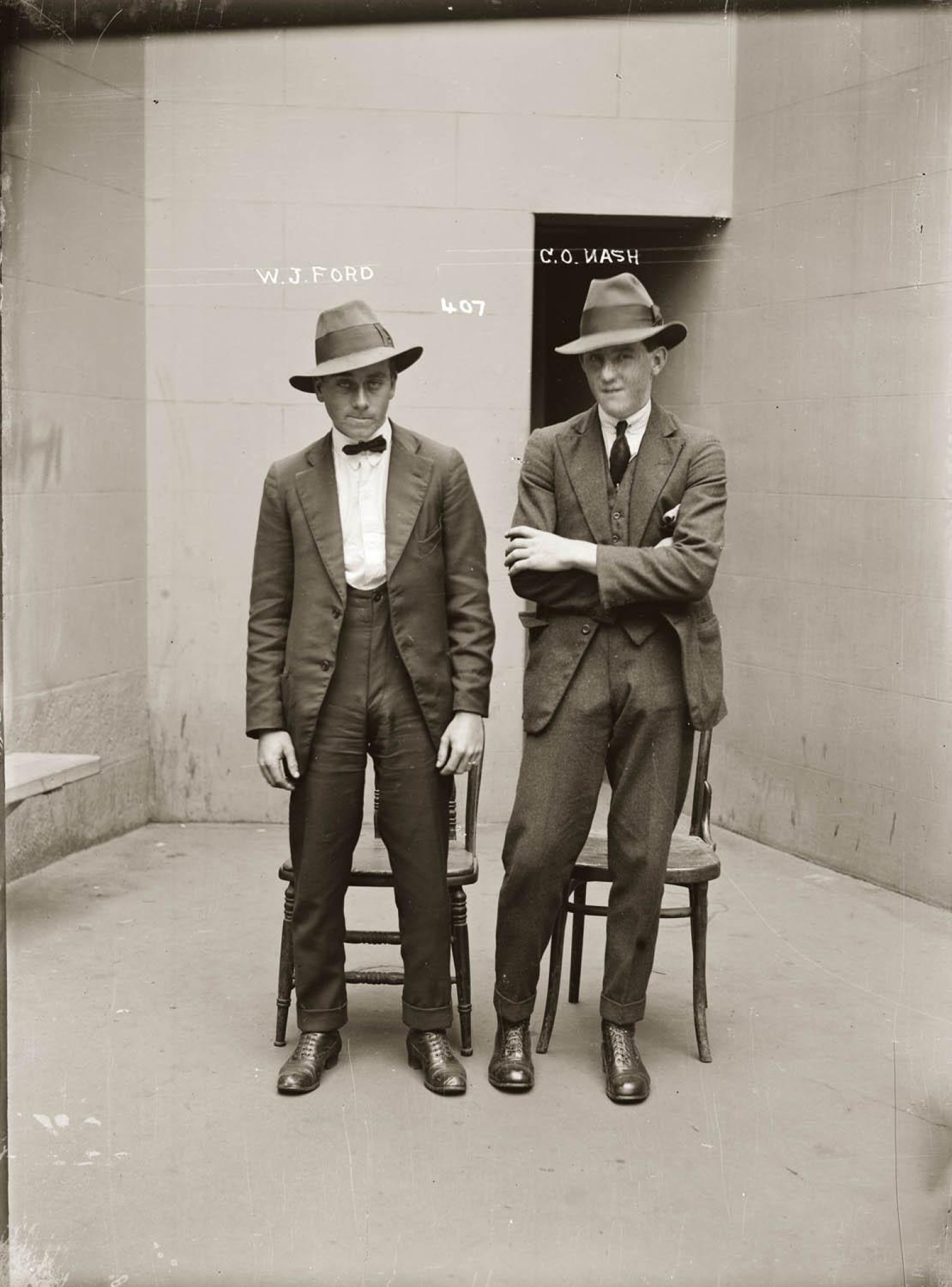 Titled "Mug shot of John Walter Ford and Oswald Clive Nash, June 1921, possibly North Sydney Police Station, Sydney."