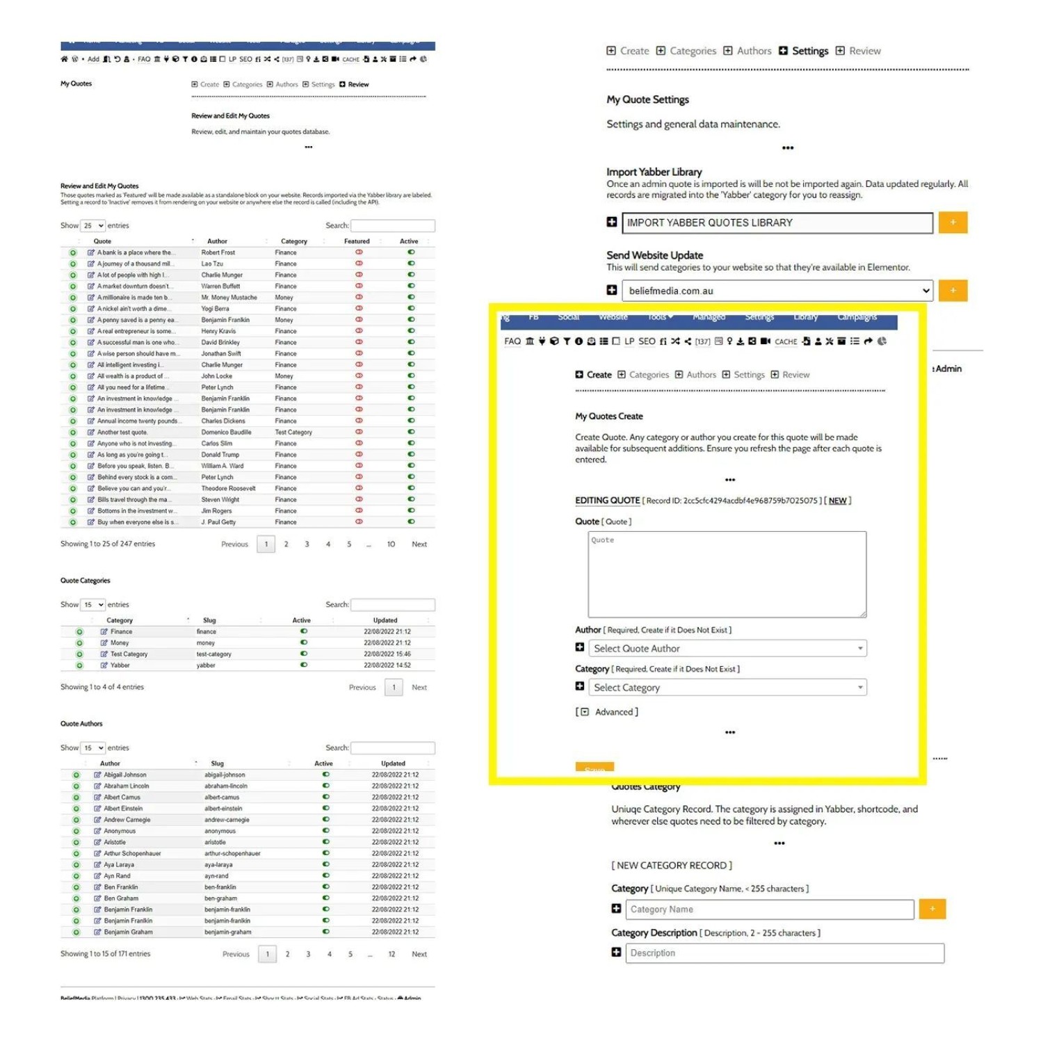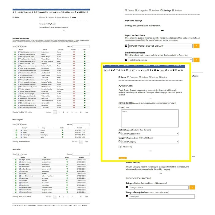 The tool allows you to create categories and authors, and the review table gives you control over quote visibility.