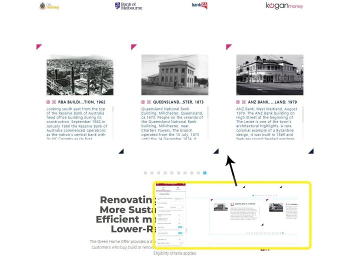 Each panel links to an image modal and the original post on Instagram. Another modal returns the full post without the distraction of the slider.